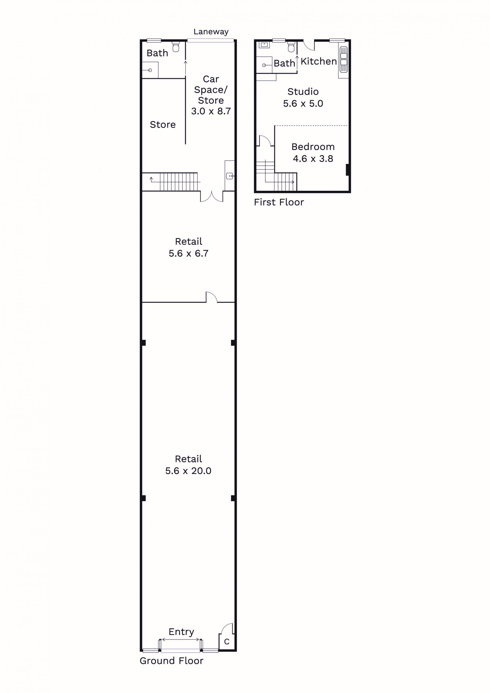 • Designated rear access 1 Bedroom Living space attached (currently tenanted for residual income)