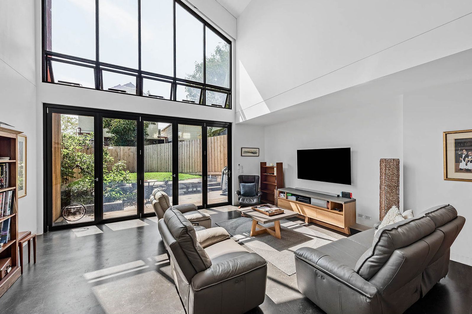 - open plan living/dining area with quality built in cabinetry.