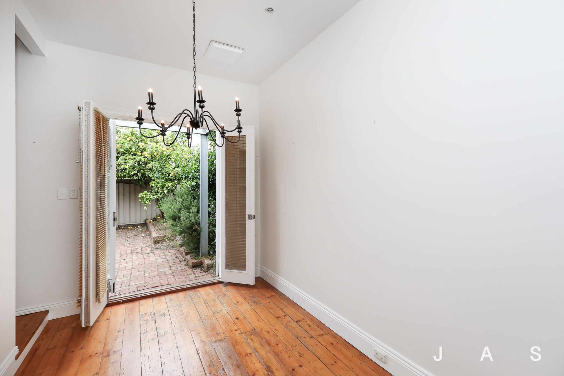 - Open-plan kitchen and dining area looking out to the courtyard