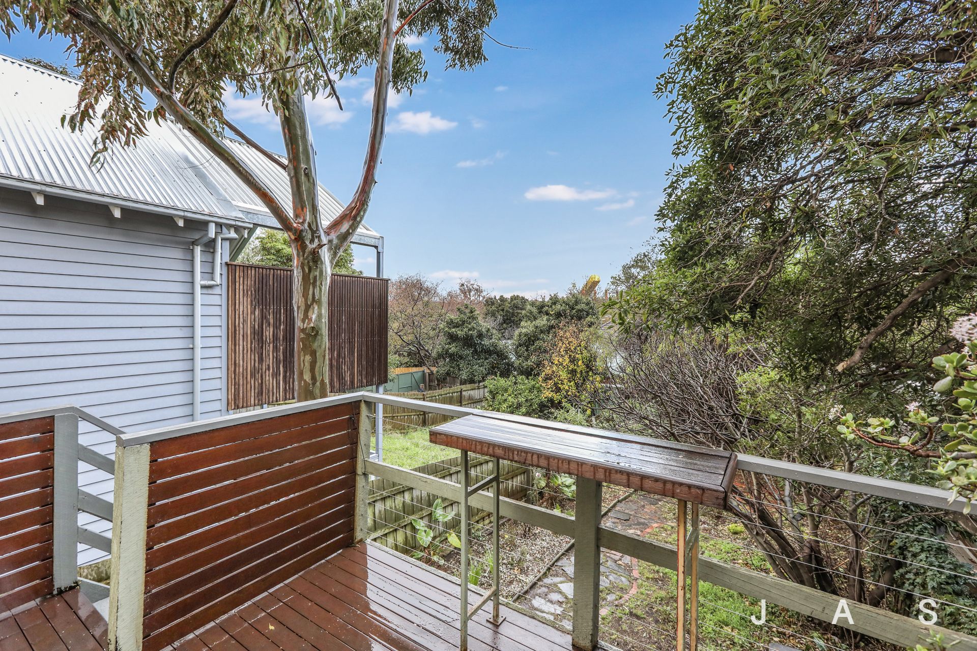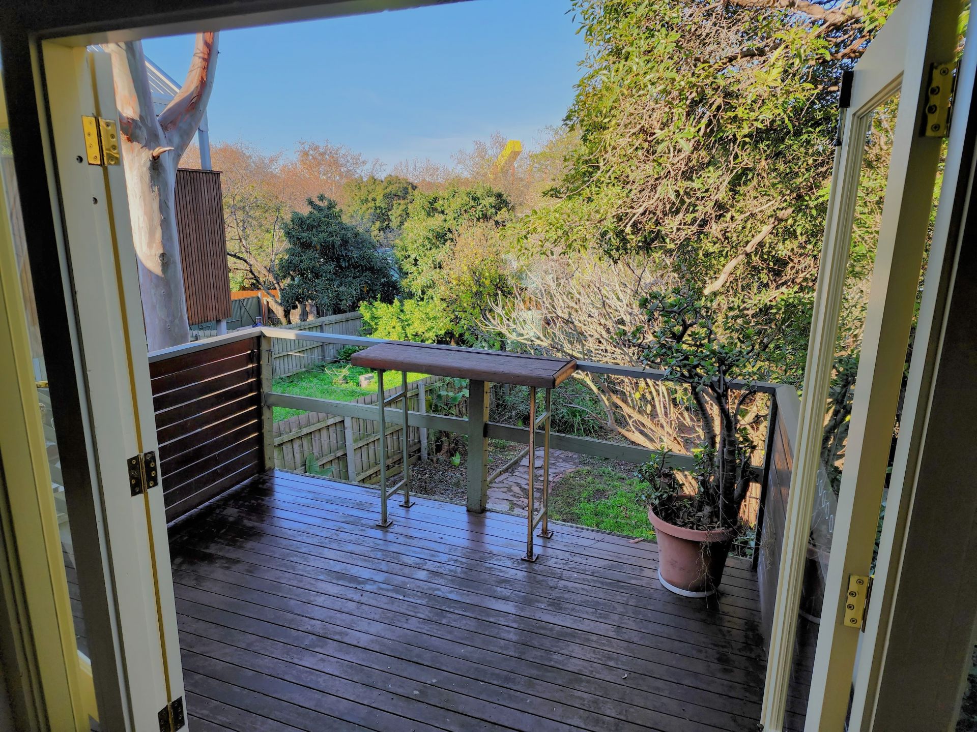 - Outdoor balcony/decking overlooking the rear garden.