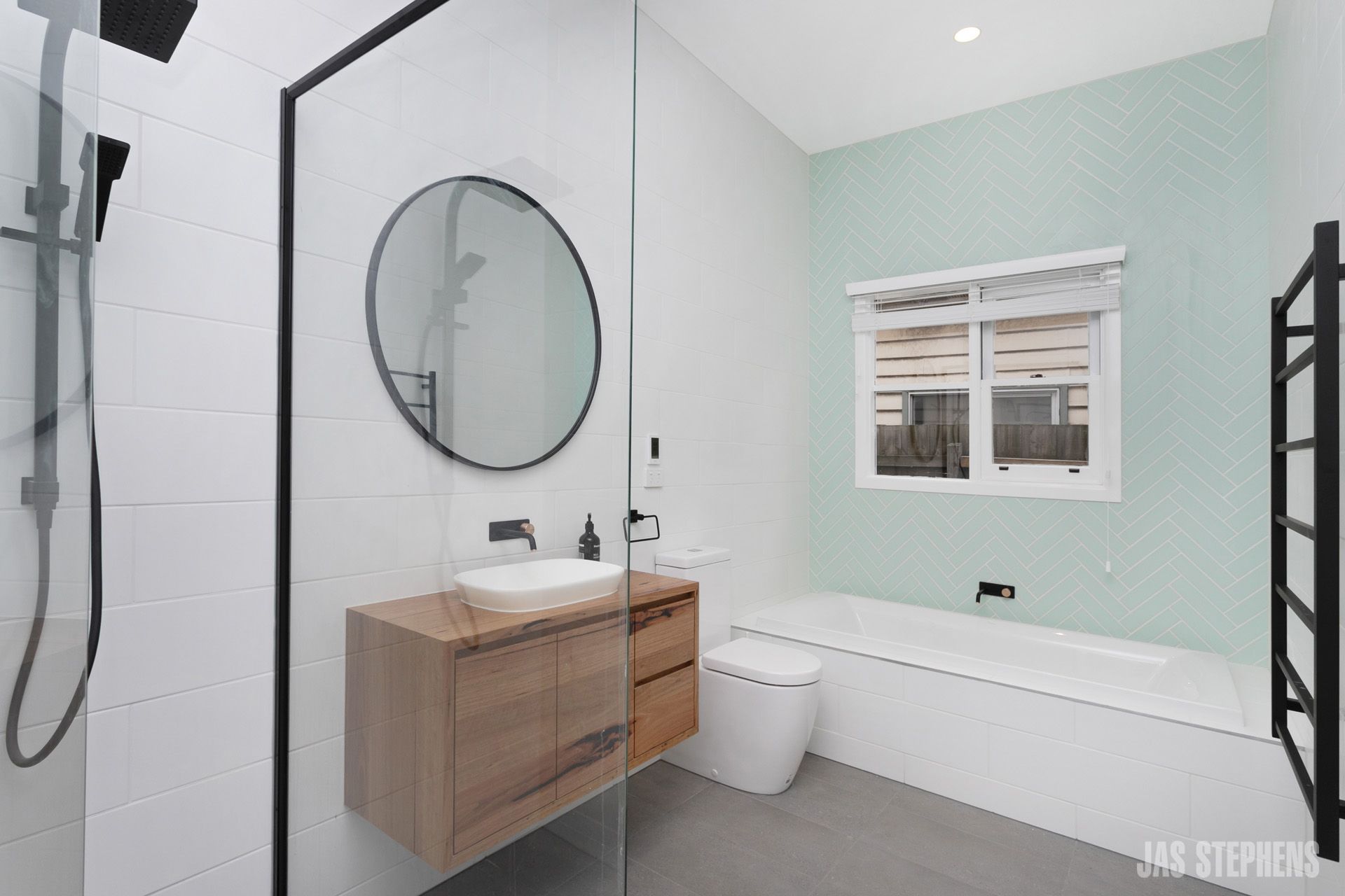 - Central bathroom with bathtub