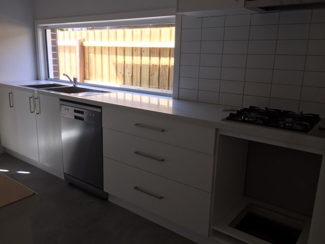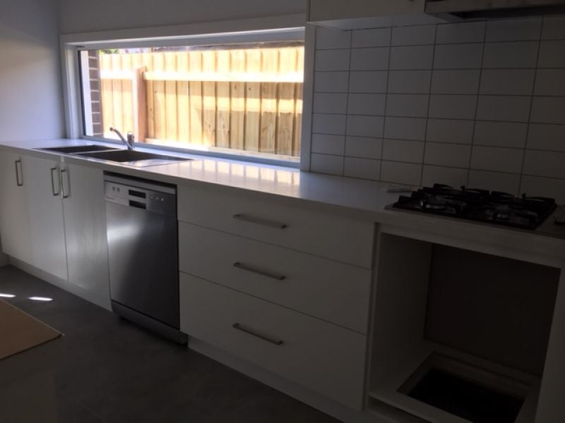 * Kitchen with stone bench tops , island bench and stainless steel appliances