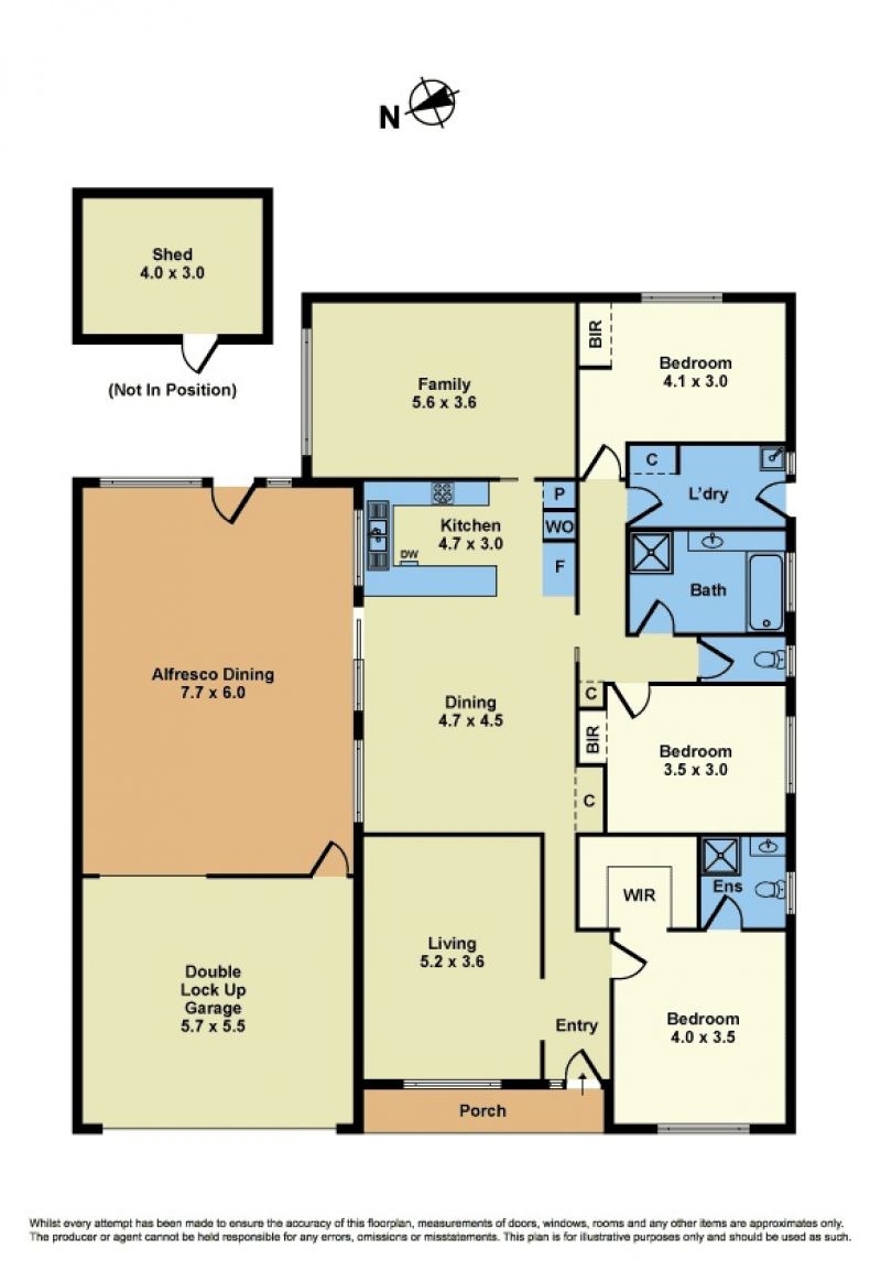 - Double garage with rear roller door access to the large, covered alfresco