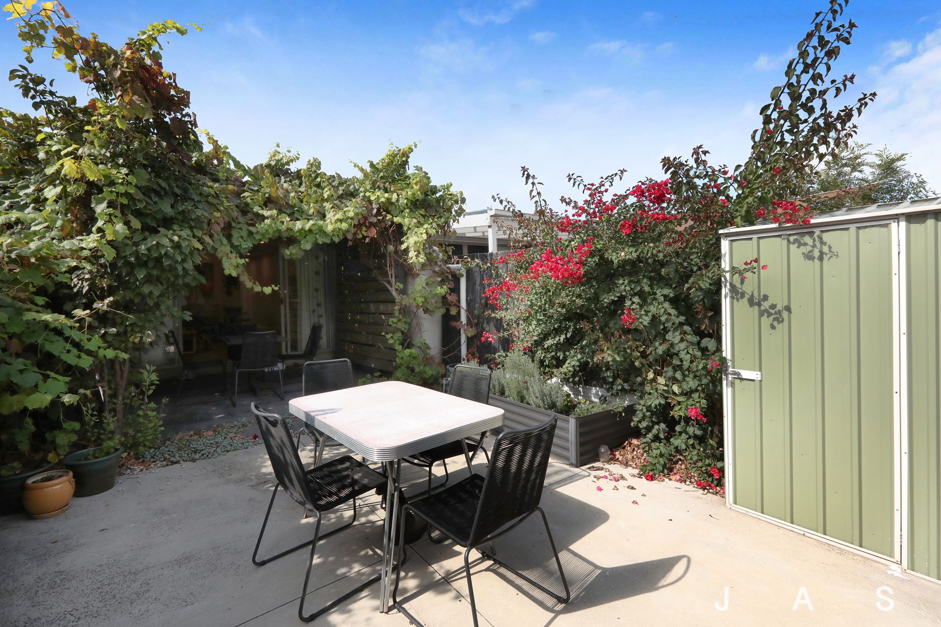 Low-Maintenance Living – Includes a private outdoor area with vine covered pergola and a 2020L water tank.