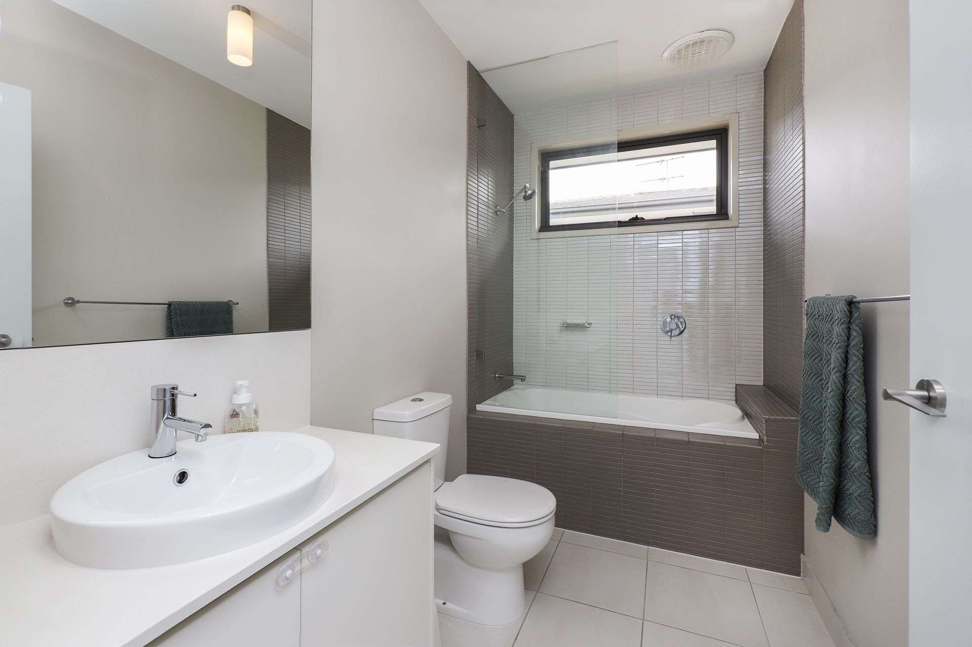 - Modern central bathroom with shower over bath