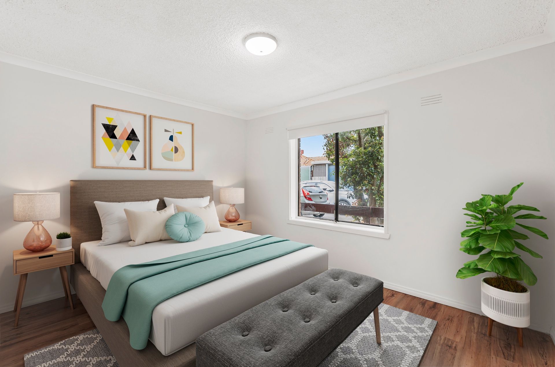 - The two spacious bedrooms are adorned with built-in robes