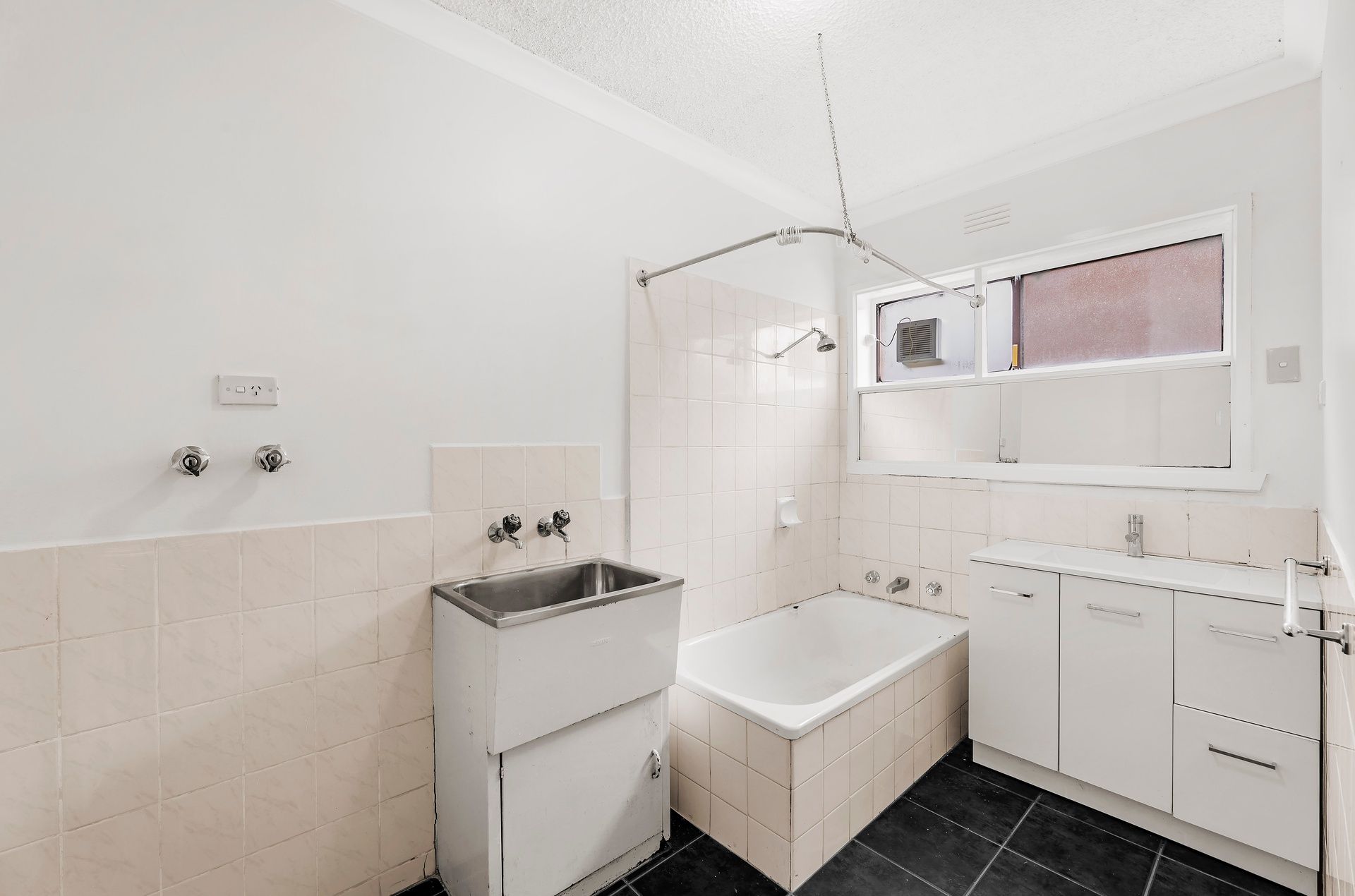 - The laundry is cleverly incorporated into the bathroom