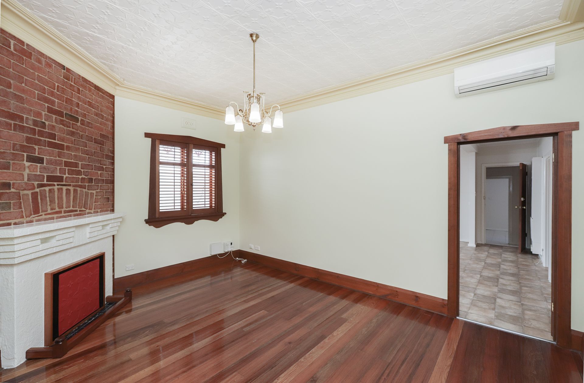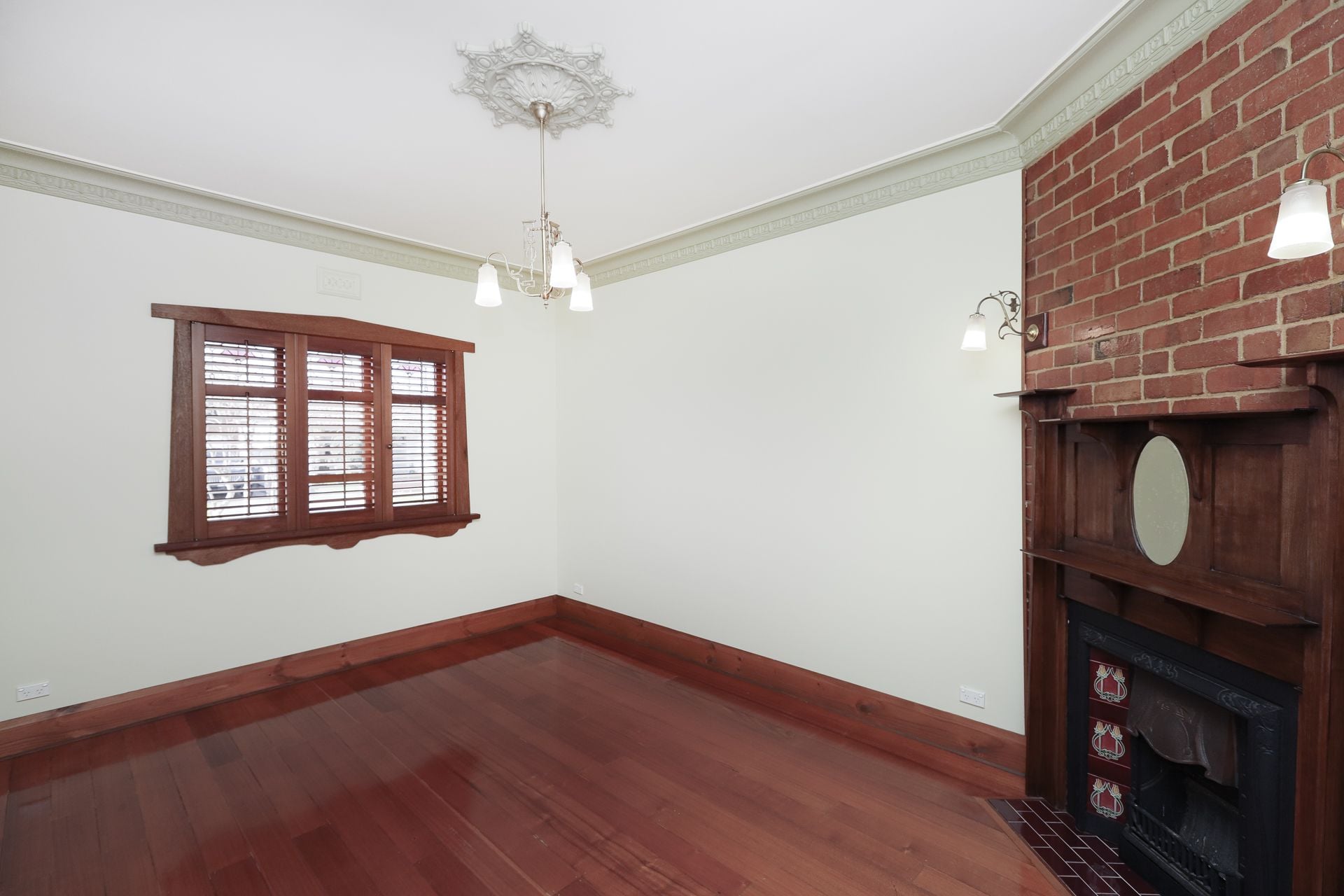 * Polished floorboards, pressed metal ceilings, period light fittings, decorative open fireplace and plantation shutters