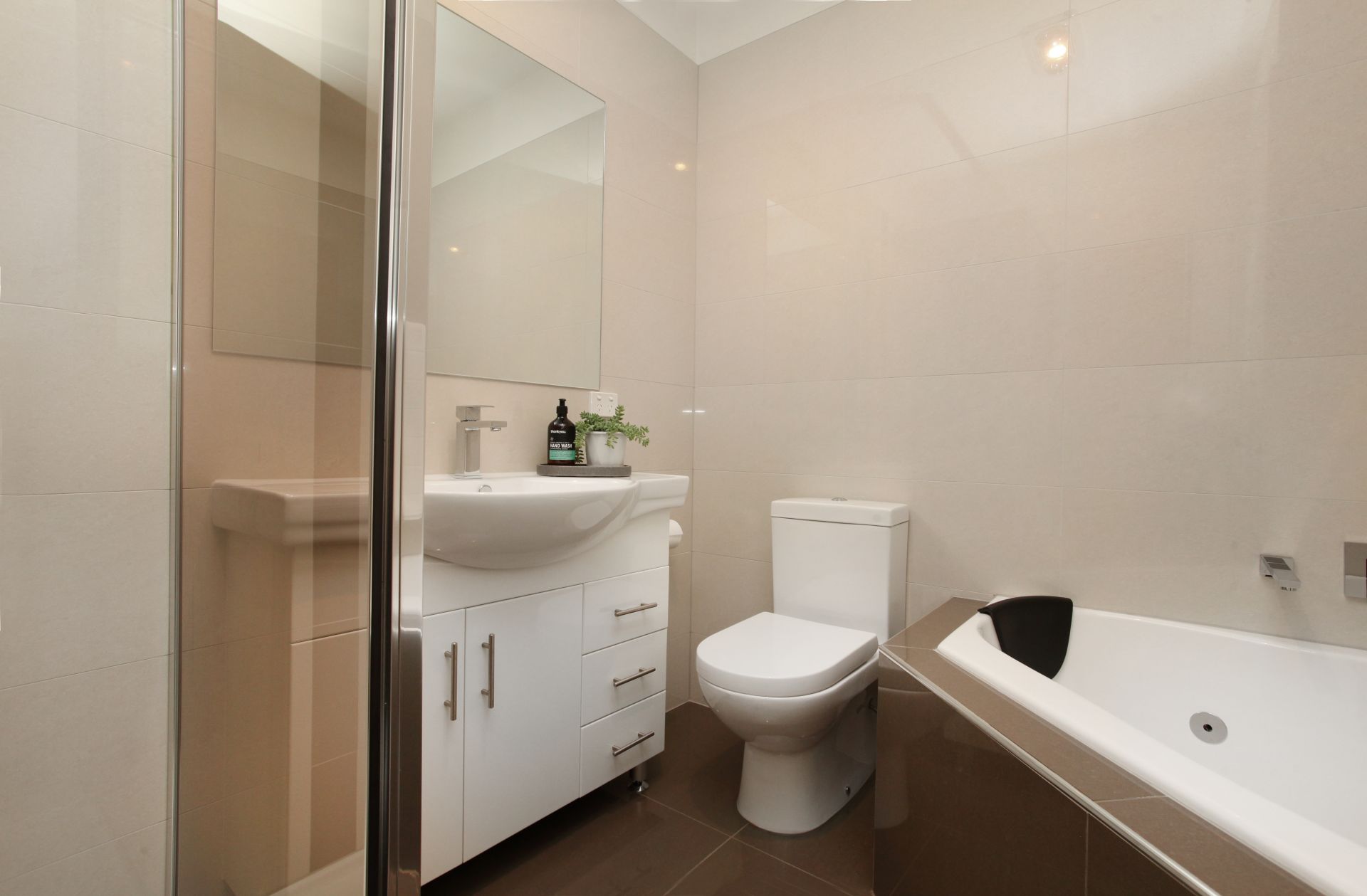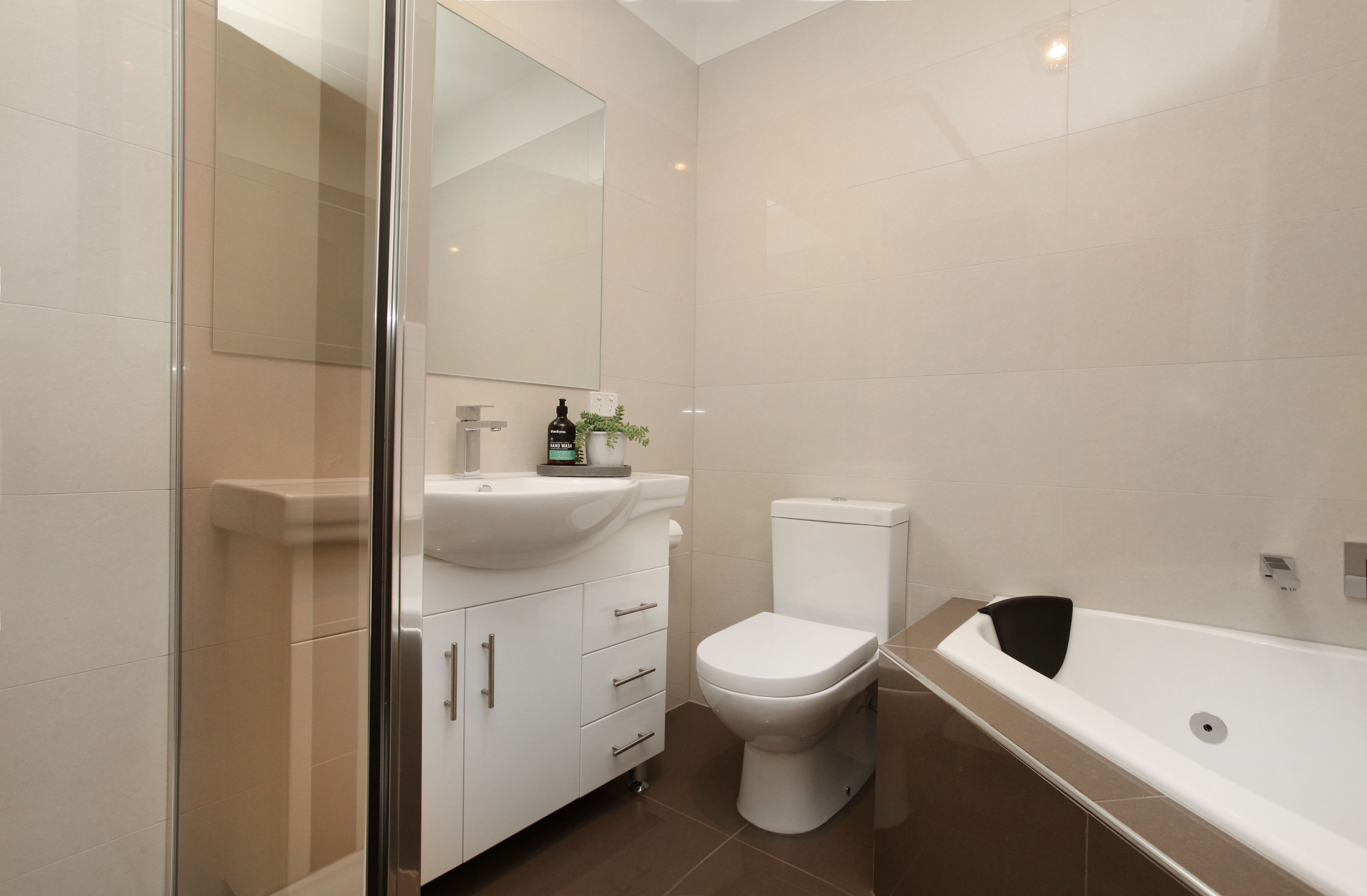 - Two bedrooms include a spacious master with a walk-through robe and large ensuite