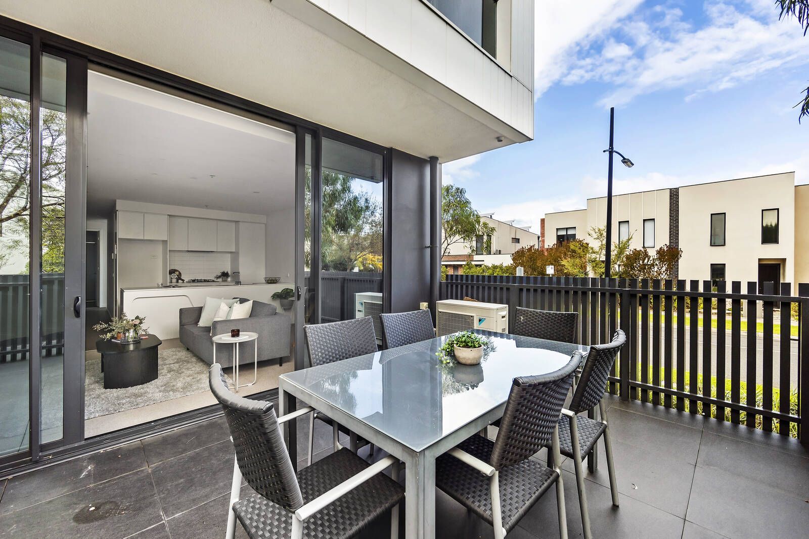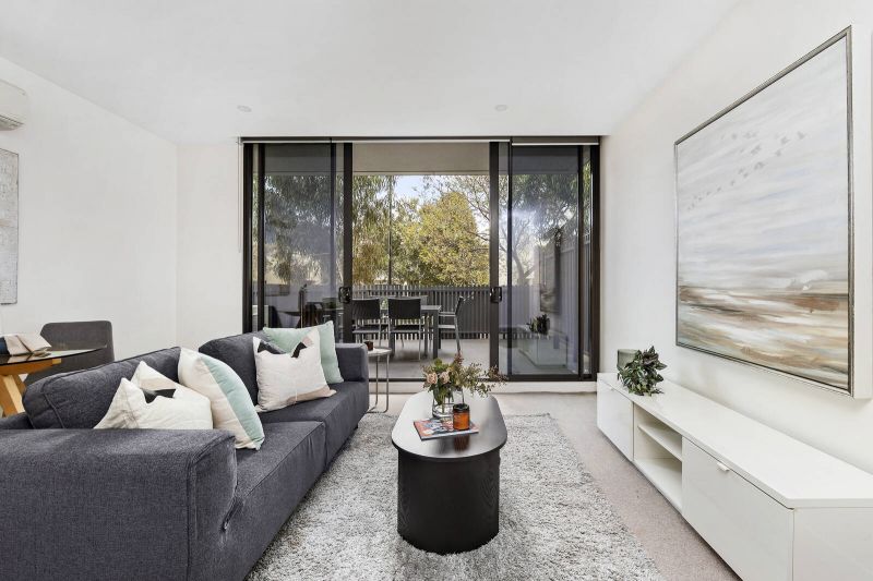 Living and dining areas that make the most of the terrace are complemented by an open-plan kitchen where stone benches and stainless-steel appliances tell a stylish story while two double bedrooms, one with courtyard access, enjoy their own zone of an inviting, intelligent floorplan. An impeccably maintained bathroom, heating/cooling and security add to the attraction of spaces with significant ground level advantages.