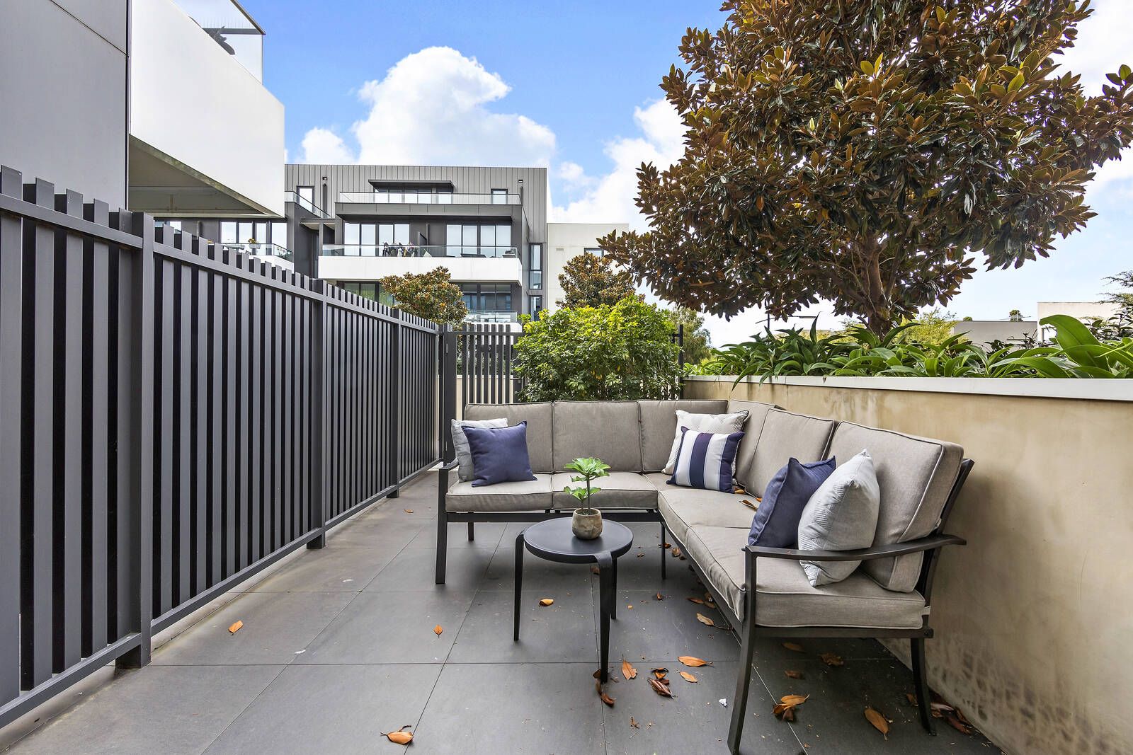 The leafy allure of its balcony and the parkland aspect of its courtyard instantly illustrate the indoor-outdoor character of this beautiful apartment in ‘Botanica’, the awarding Banbury Village Estate’s best address.