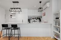Boasting a free-flowing floor plan and timeless designer style, your private sanctuary invites you to escape the buzz and unwind or invite friends over and entertain with ease. Open-plan living takes in sprawling rooftop views and encompasses generous dining and living zones accompanied by a sleek kitchen with stone benchtops, Bosch appliances and a pendant-lit island bench with a breakfast bar. Split-system heating and cooling ensures your constant comfort, while direct access to the enviably large covered entertaining balcony promises effortless indoor/outdoor living.