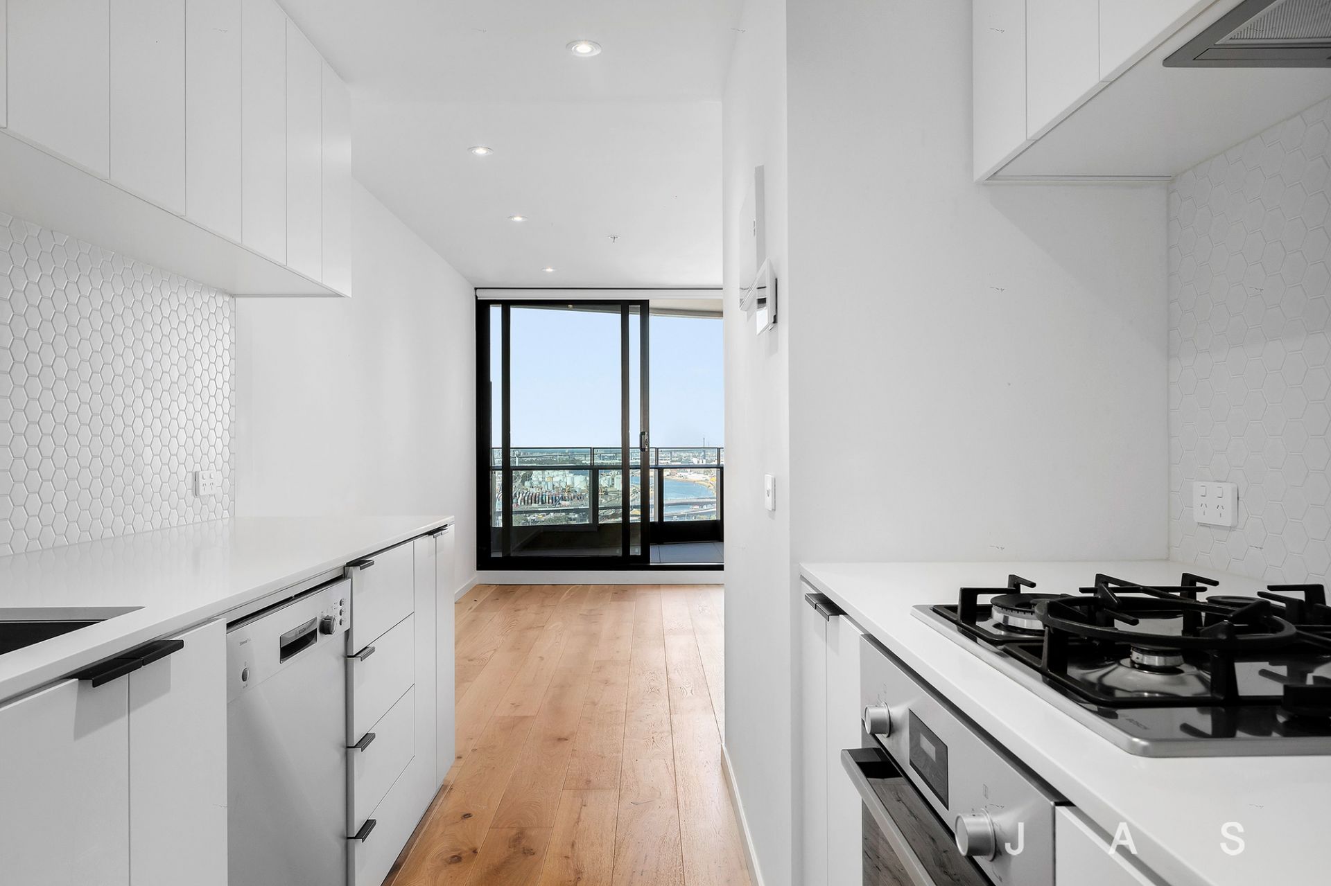 Step inside to be instantly welcomed by the beautifully appointed kitchen, where stone benchtops, stainless steel appliances and sleek cabinetry are sure to impress. Engineered timber floorboards sweep from the front door, through the kitchen to the large living area, spilling effortlessly to the generous covered entertaining balcony, where sparkling city views set the perfect backdrop for alfresco entertaining.