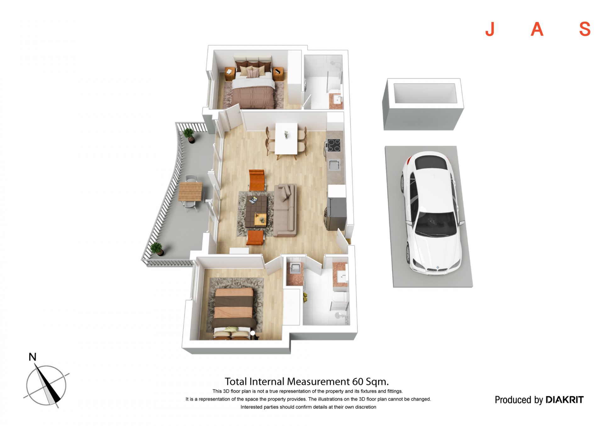 • Two stylish bathrooms, including a central bathroom with a shower