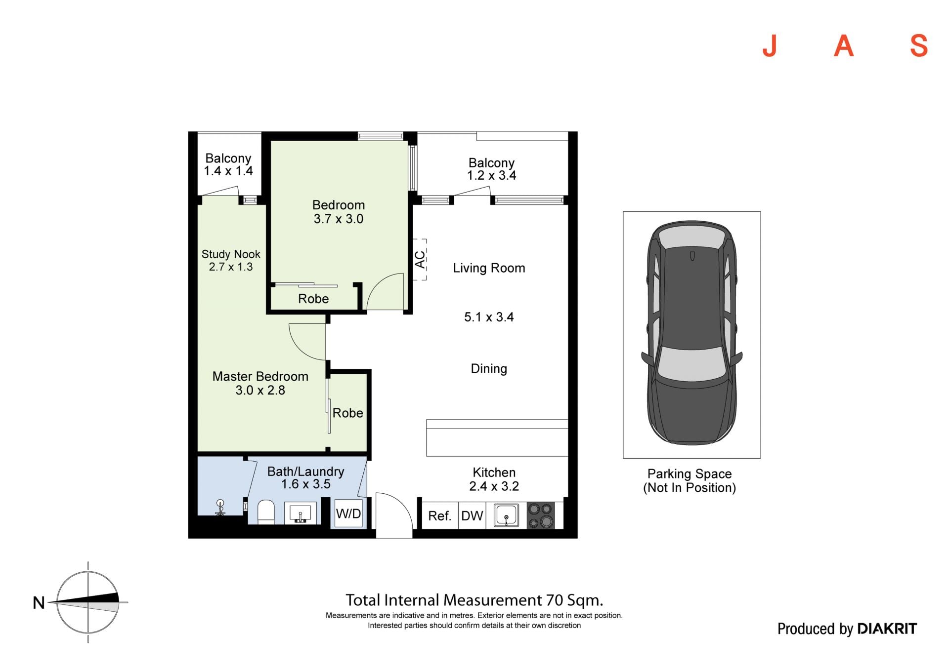 Two carpeted bedrooms with built-in robes offer spacious retreats, with the large master also boasting a study nook and a private balcony. Serving the bedrooms is the stylish bathroom, with floor-to-ceiling tiling, a large shower and incorporated laundry facilities for ultimate convenience.