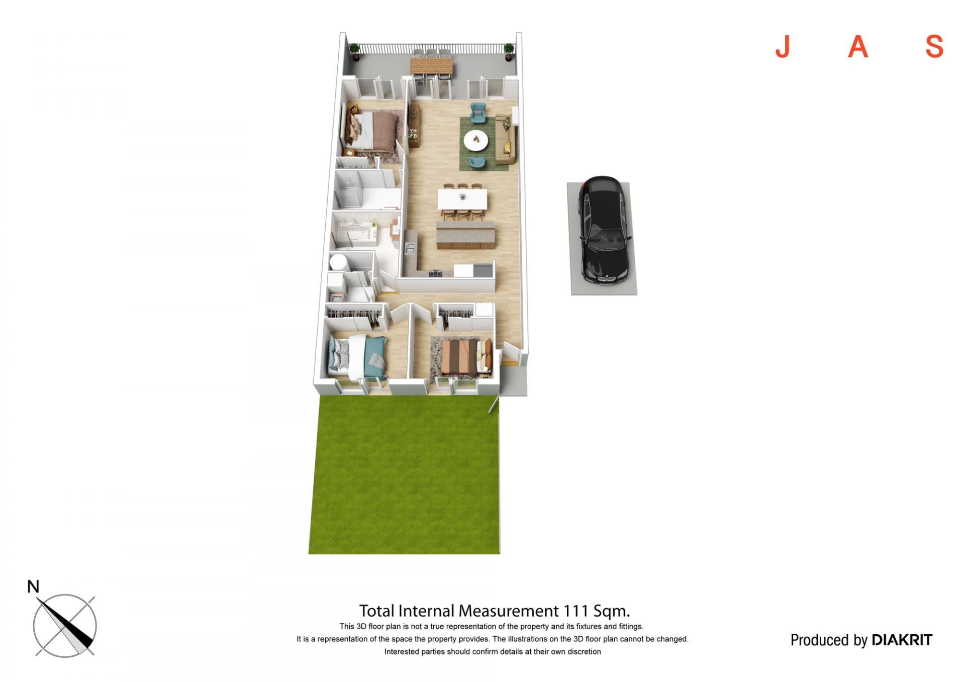 • 3 bedrooms, 2 bathrooms and an open kitchen/living/dining domain