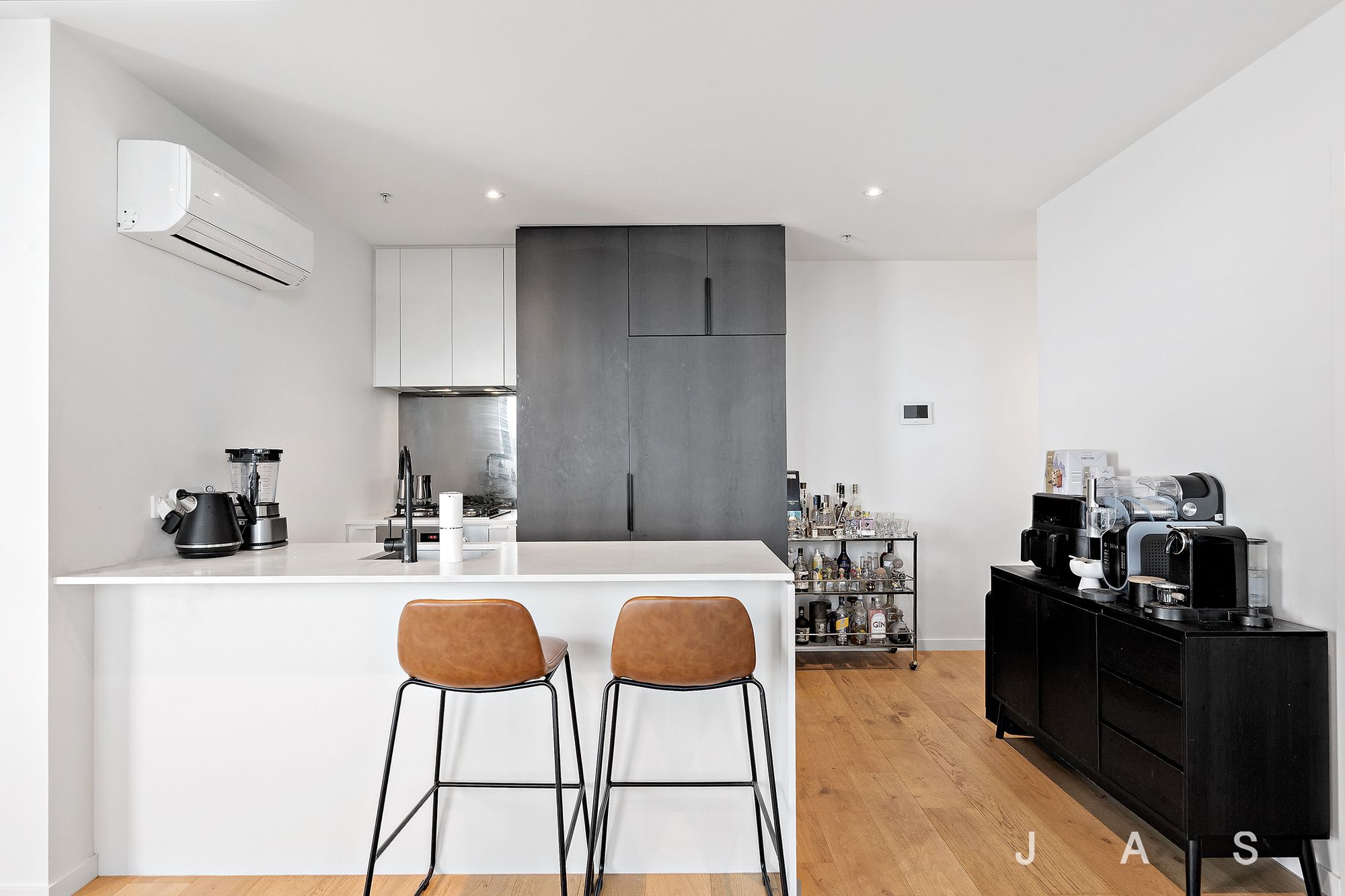 Both bedrooms feature built-in robes and large, light-catching windows, with the master also boasting a chic, fully-tiled ensuite with luxe rainfall shower. The second bathroom is styled to mirror the sophistication of the ensuite, while the discreet European laundry ensures total convenience without sacrificing space.