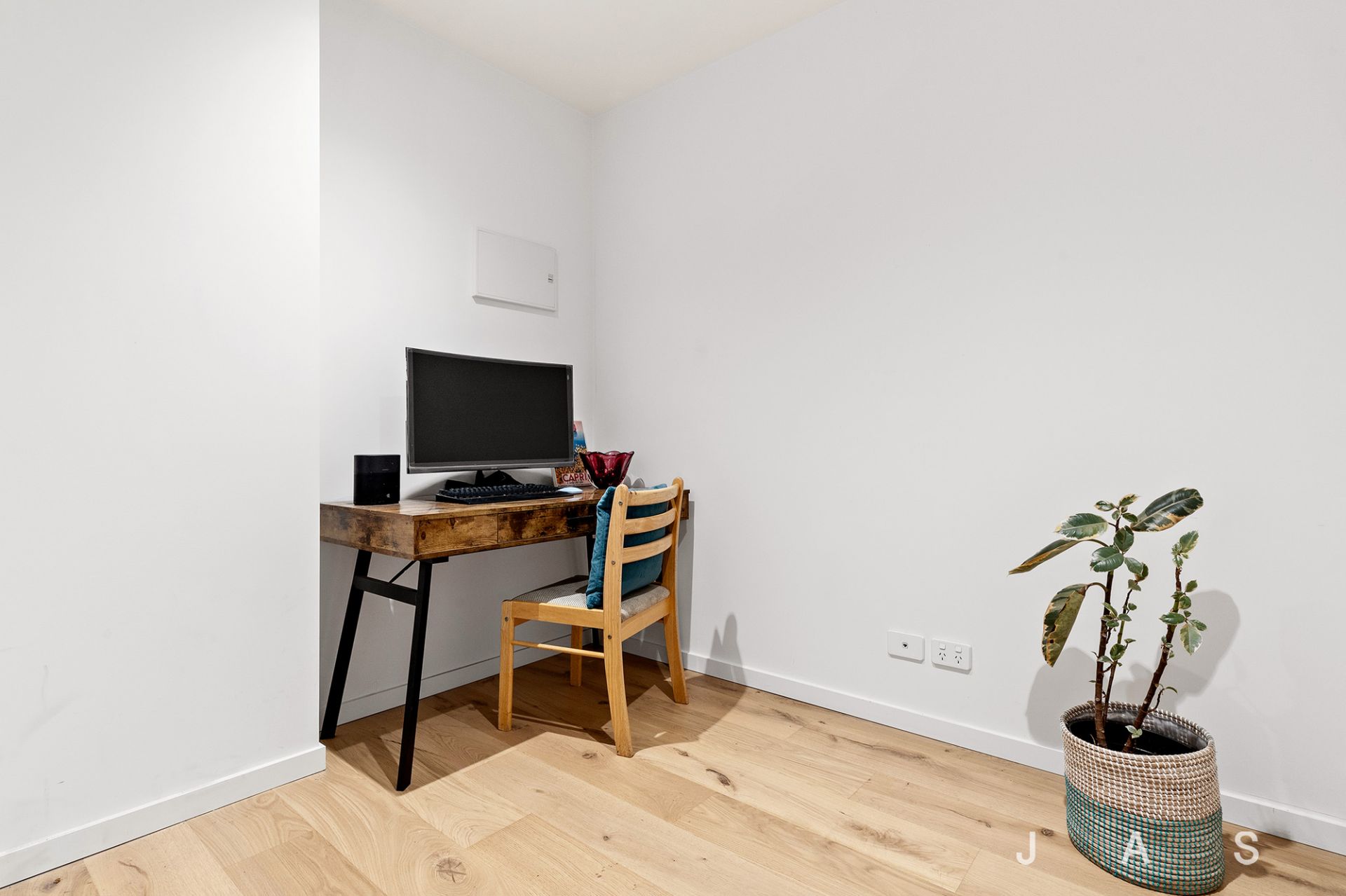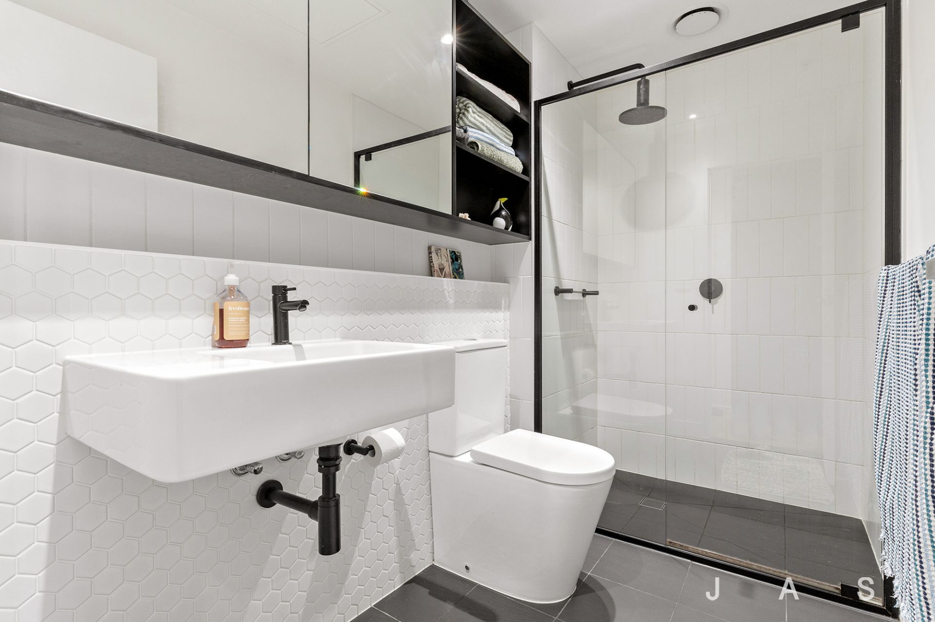 When it’s time to rest, the spacious bedroom offers an inviting retreat, with cosy carpet underfoot and a built-in robe for easy storage. The adjacent bathroom boasts floor-to-ceiling tiling, chic black fixtures and a luxe rainfall shower, while the discreet European laundry and study nook with in-built desk and shelving add loads of appeal.
