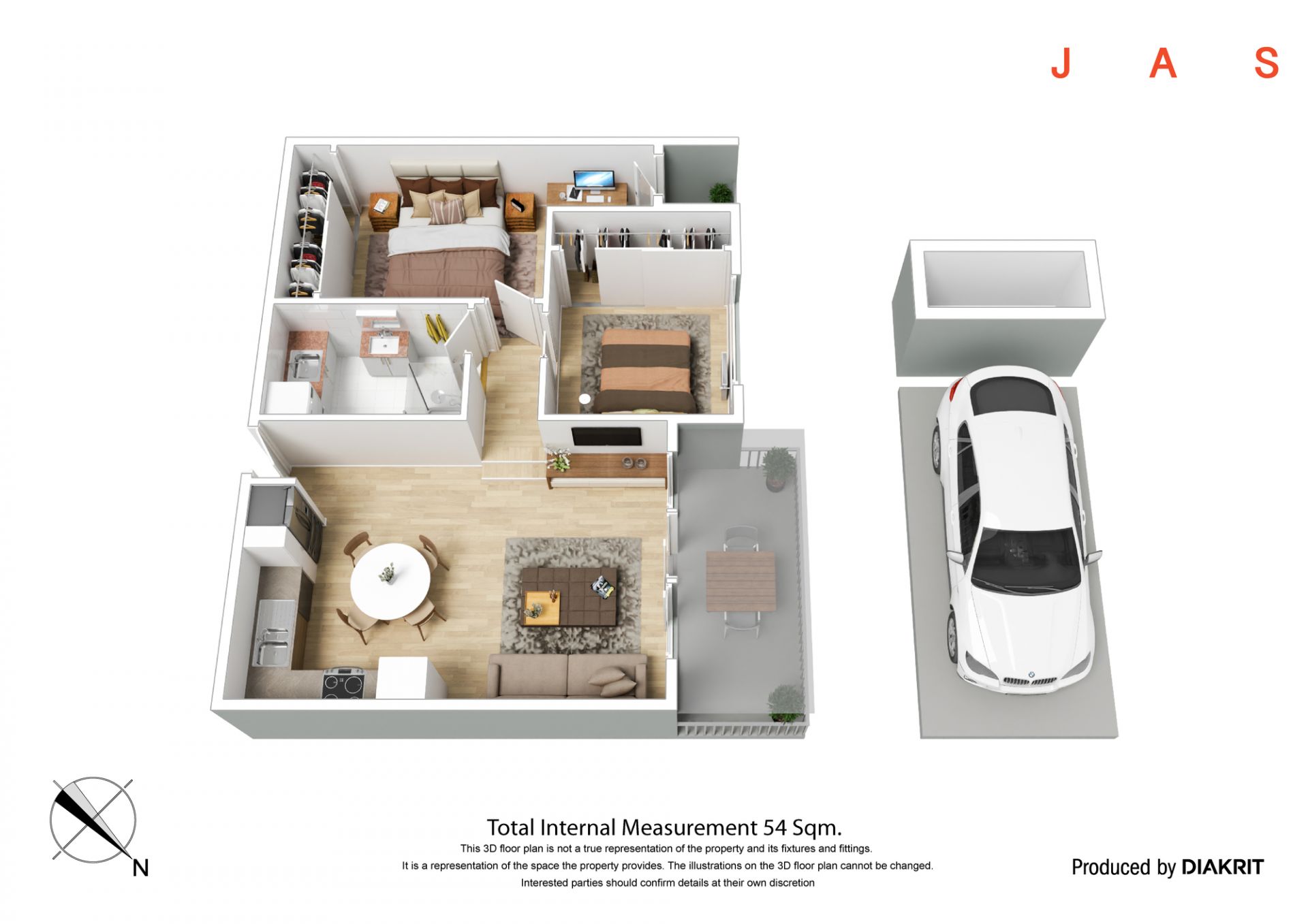 Two bedrooms with built-in robes offer inviting retreats and include a luxuriously spacious master appointed with a study nook and a neat, private balcony. Both bedrooms are served by the modern bathroom, where laundry facilities have been incorporated to offer ultimate convenience.