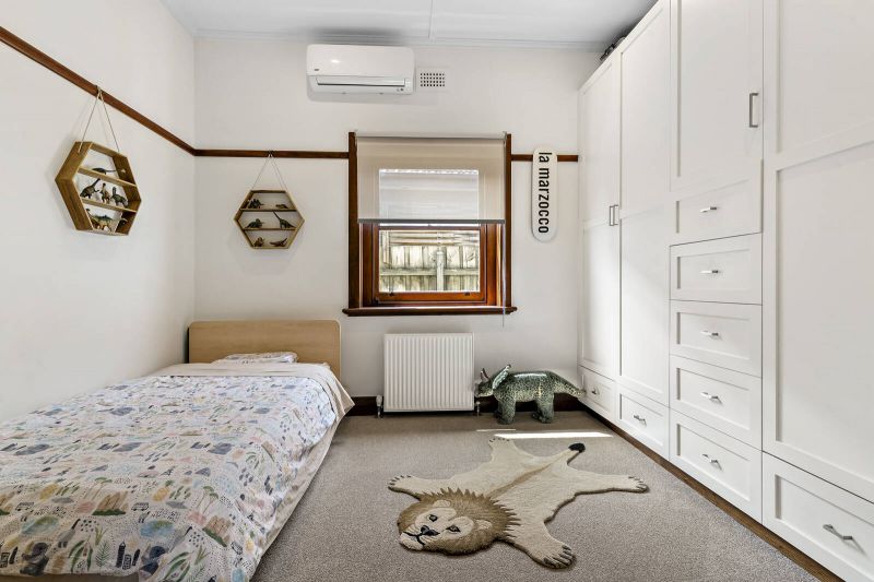 On a large rectangular block with wide street frontage and a garage permit available, the spacious floor plan features three large bedrooms with built-in robes (including master with ensuite) stunning formal living and dining options, a relaxed open-plan kitchen, dining and living area and bifold doors opening to the sun-filled landscaped backyard. Elegant and charming with beautiful original windows, timber and ceiling features, it also offers an array of modern amenities including new split system air conditioning in all living zones and bedrooms, luxurious hydronic heating throughout, freshly carpeted and painted bedrooms, a spacious separate laundry, new steel frame shed and new downlights.