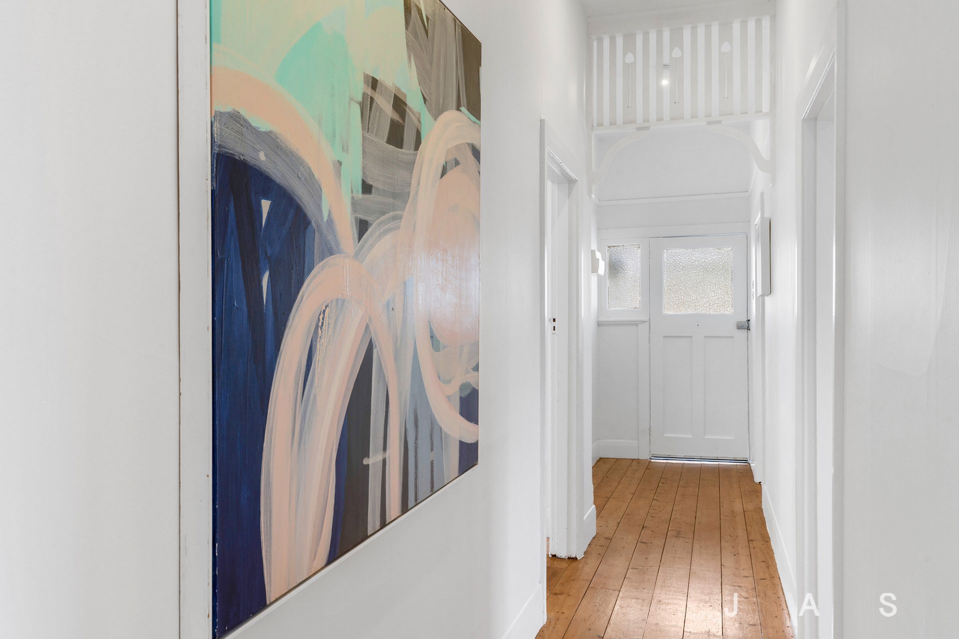 Nestled behind a picket fence and a large front garden complete with an abundant lemon tree, this home’s picture-perfect potential is evident from the front gate. Inside, an elegant entry hall welcomes you with stunning original fretwork, while high ceilings and restored honey-hued floorboards add more original appeal.