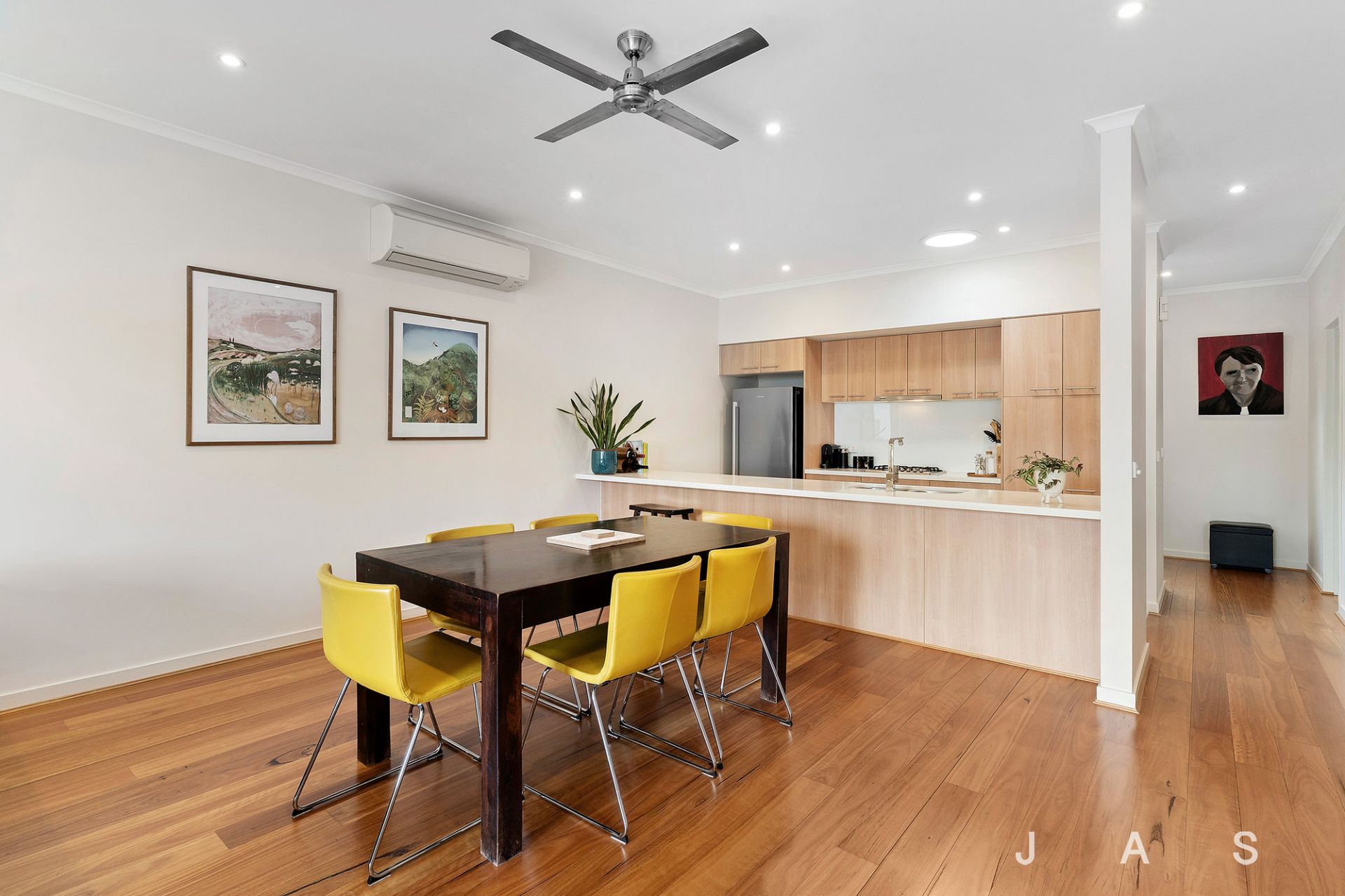 • Split-system heating and cooling + ceiling fans + panel heaters