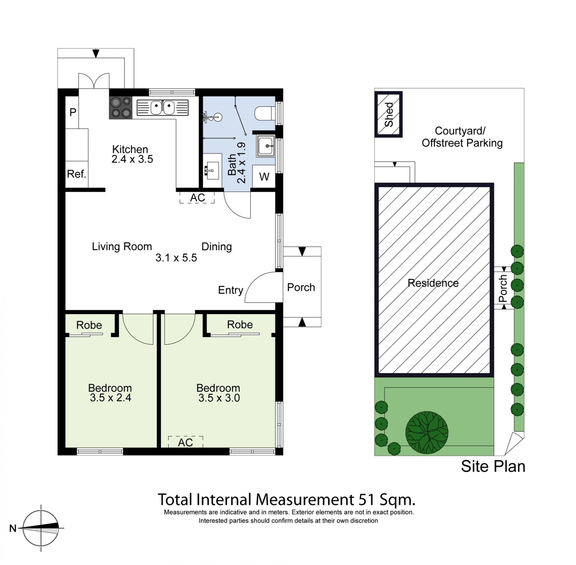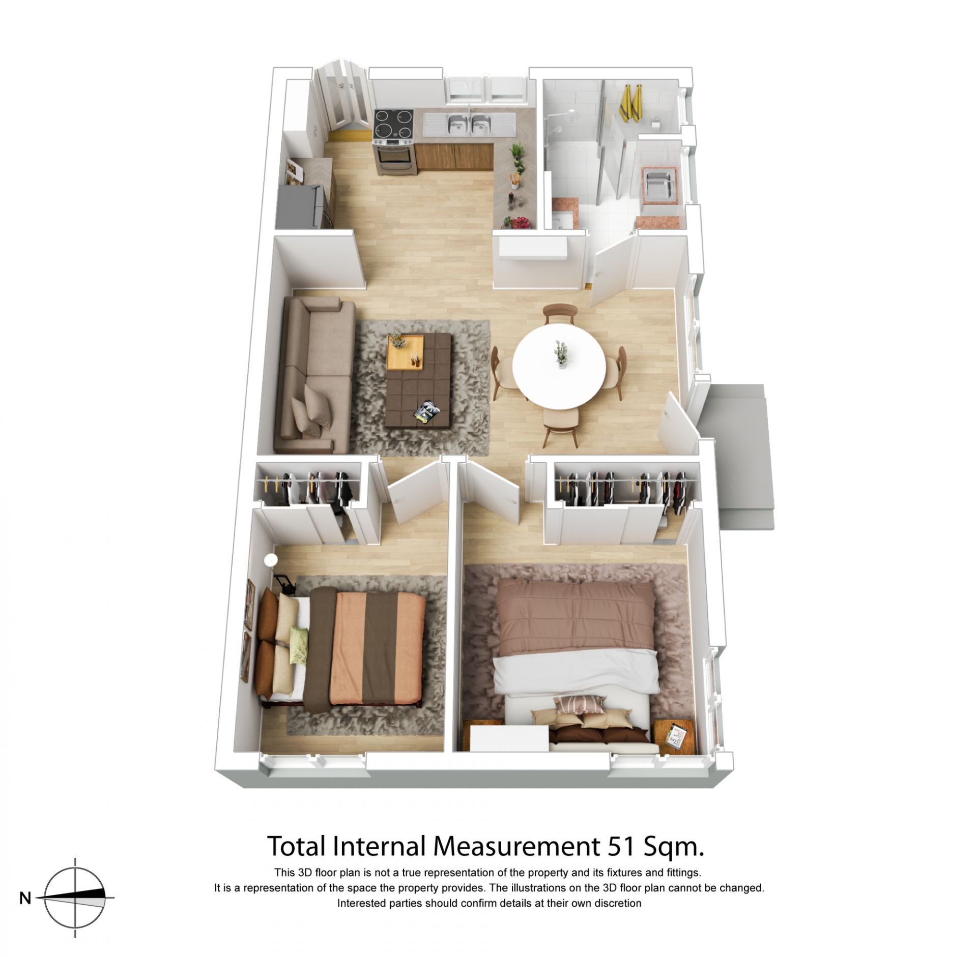 Two bedrooms with built-in robes include a large master with air conditioning and are served by the bright, modern bathroom with laundry facilities.