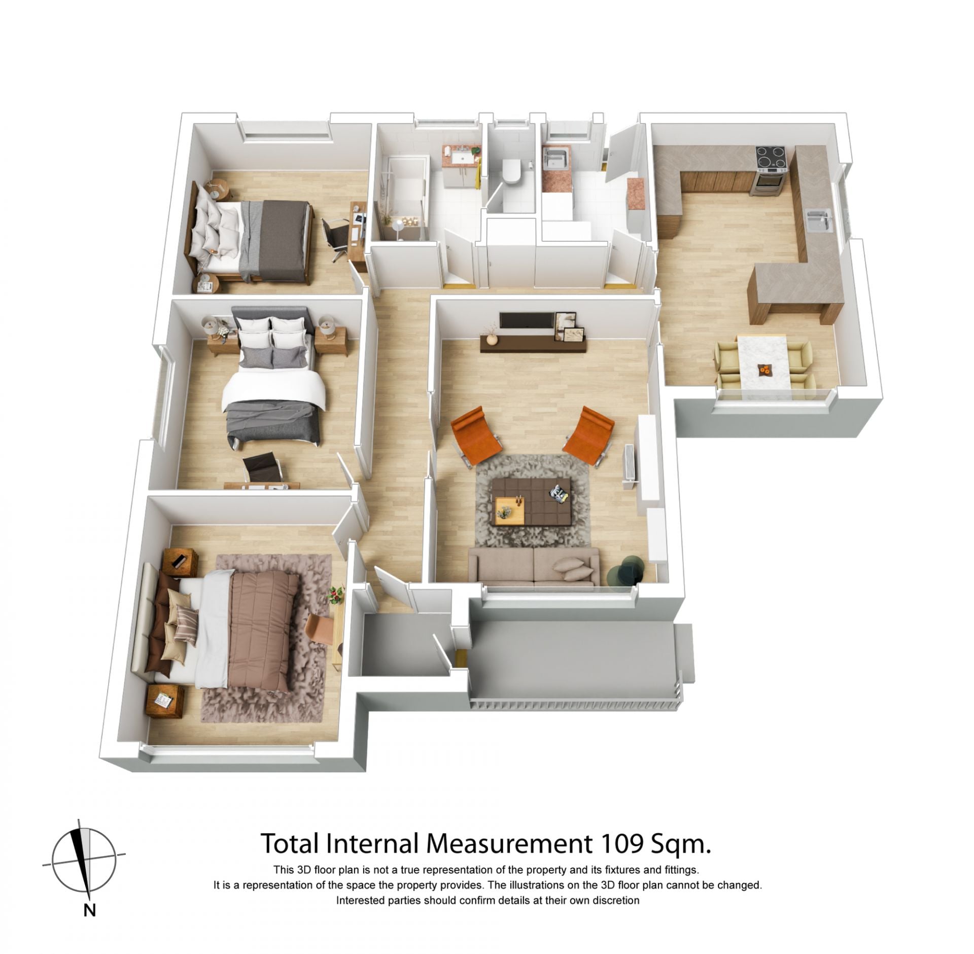 Three generous bedrooms are served by a large bathroom with an enclosed toilet, while the spacious, light-filled living room is perfectly complemented by the adjoining kitchen/dining space.