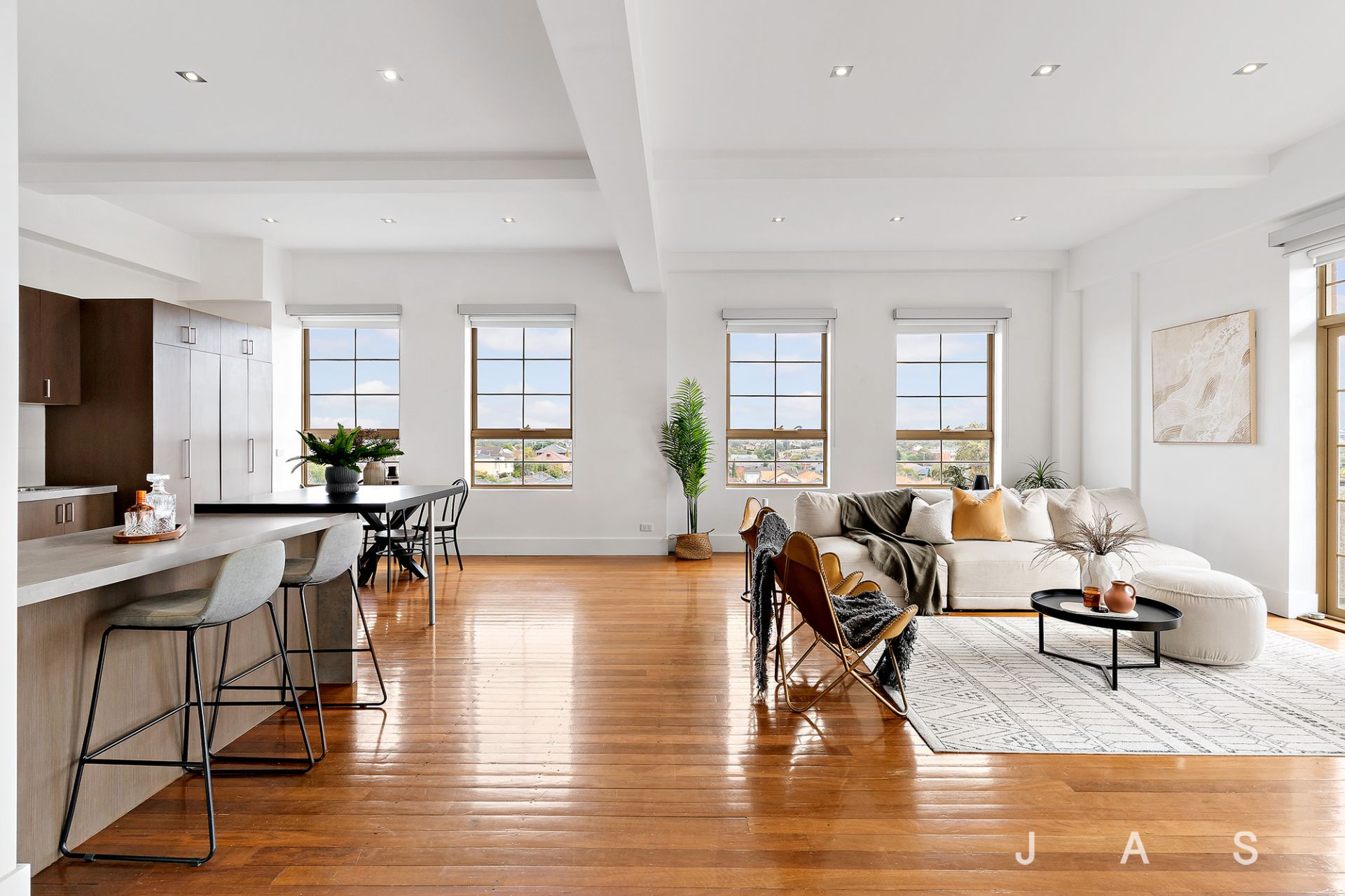 Offering New York warehouse vibes less than 10km* from Melbourne’s vibrant CBD, this enviably spacious apartment boasts house-like proportions, three-metre-high ceilings and spectacular views to the horizon.