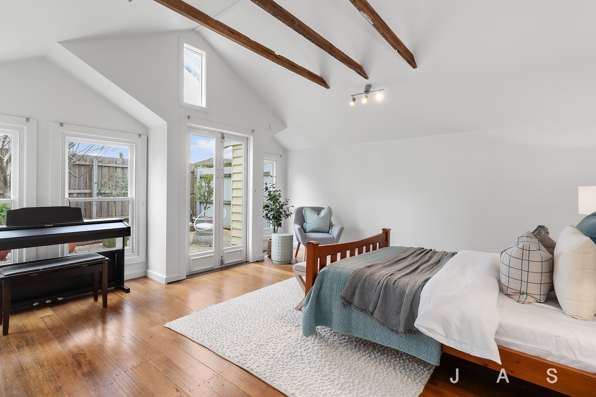 Two bedrooms with built-in robes occupy the main house, with a spectacular third bedroom nestled within the back garden. Cathedral ceilings give the third bedroom a sense of grandeur, with floods of natural light creating a truly inviting retreat perfect for older kids and guests or for use as an oversized home office or creative studio.