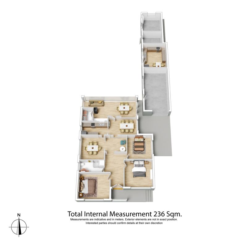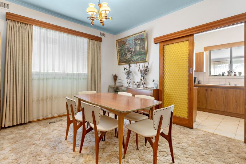 The existing home offers three generous bedrooms served by a shared bathroom, with multiple living areas offering enviable flexibility for the keen renovator. The large entry hall invites you to a formal lounge space, flowing through to the formal dining room. The kitchen merges with a casual meals room, while a large separate living room and a spacious north-facing sunroom with toilet and fireplace provide two more living spaces to enjoy.