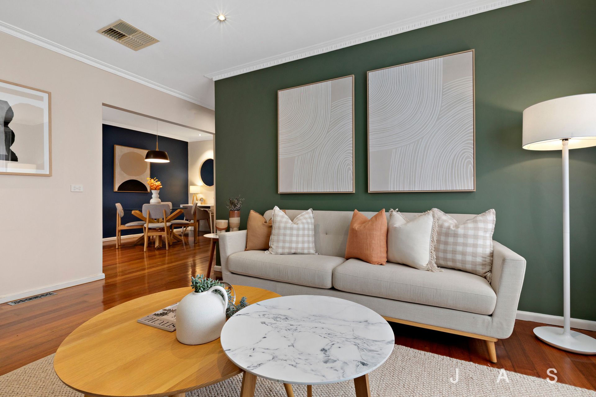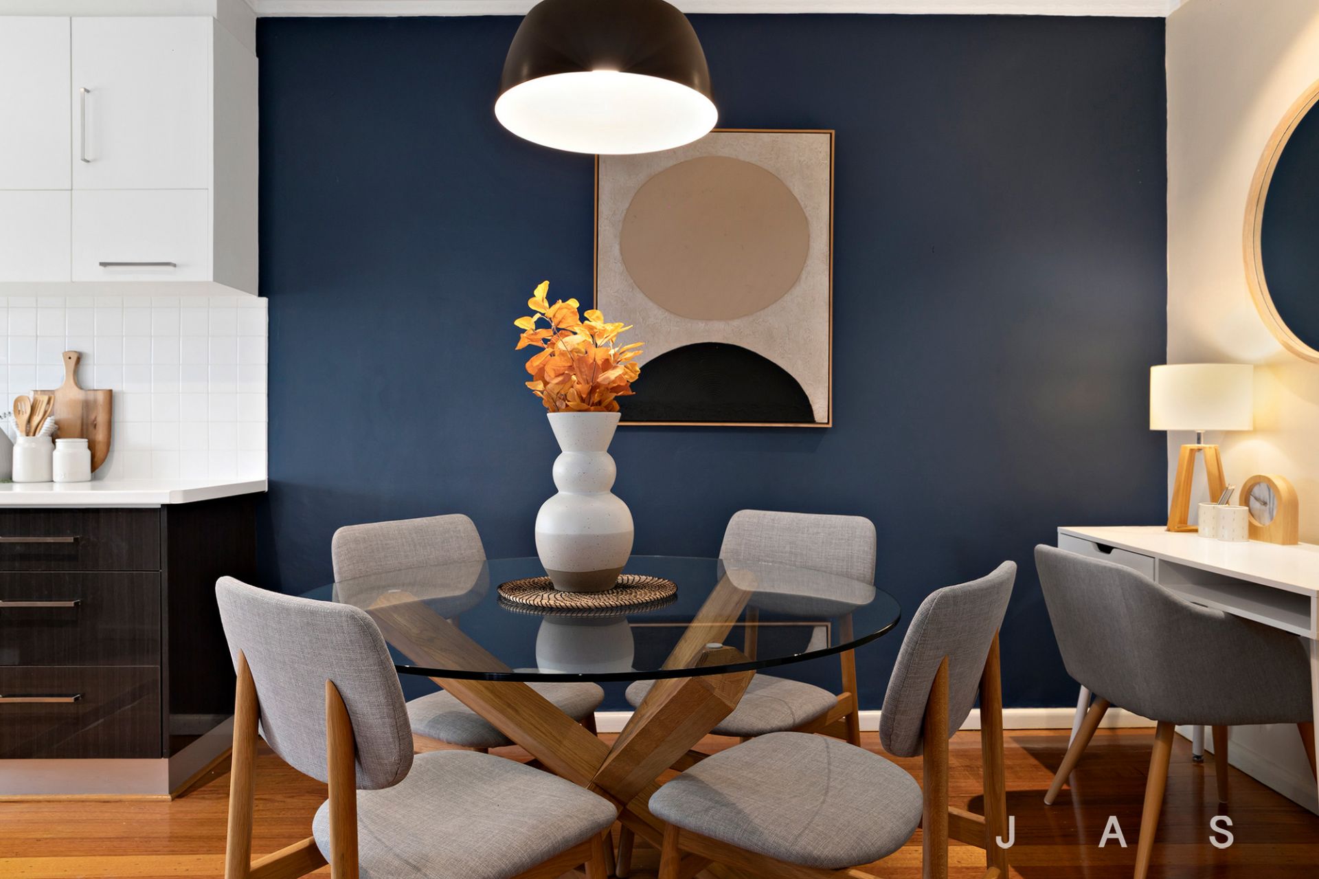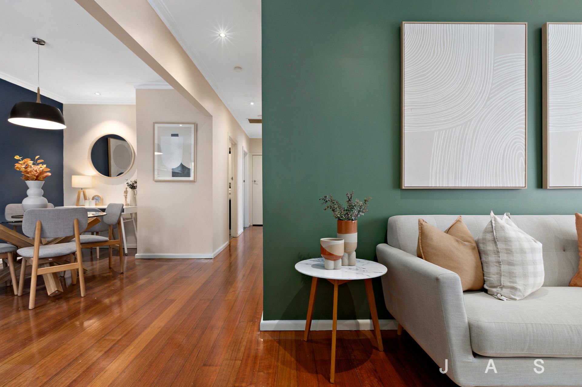 • Stunning hardwood floorboards + elegant colour palette