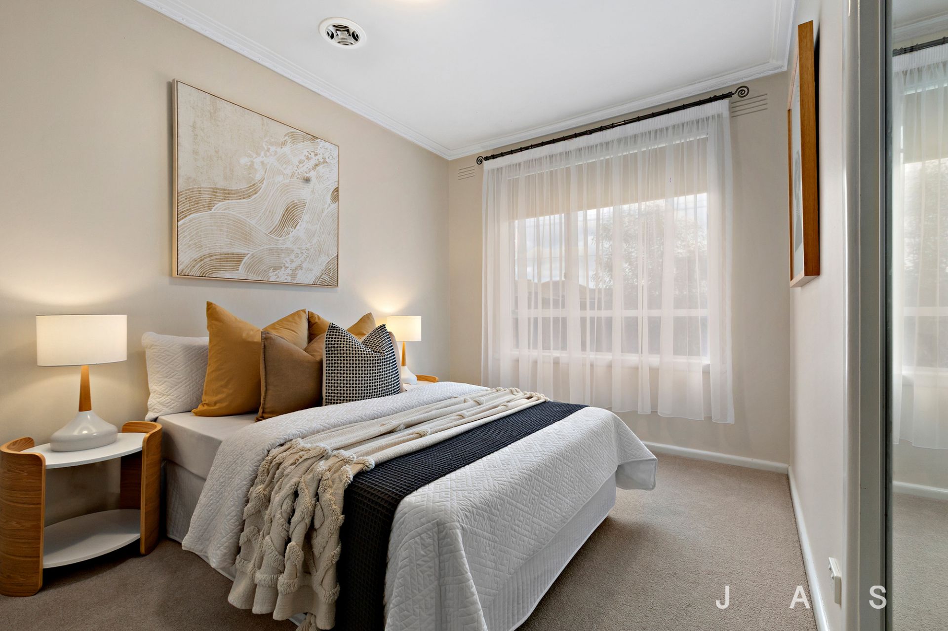 Two carpeted bedrooms with built-in robes offer inviting retreats and are served by the generously proportioned bathroom, while the large walk-in laundry is another welcome advantage.