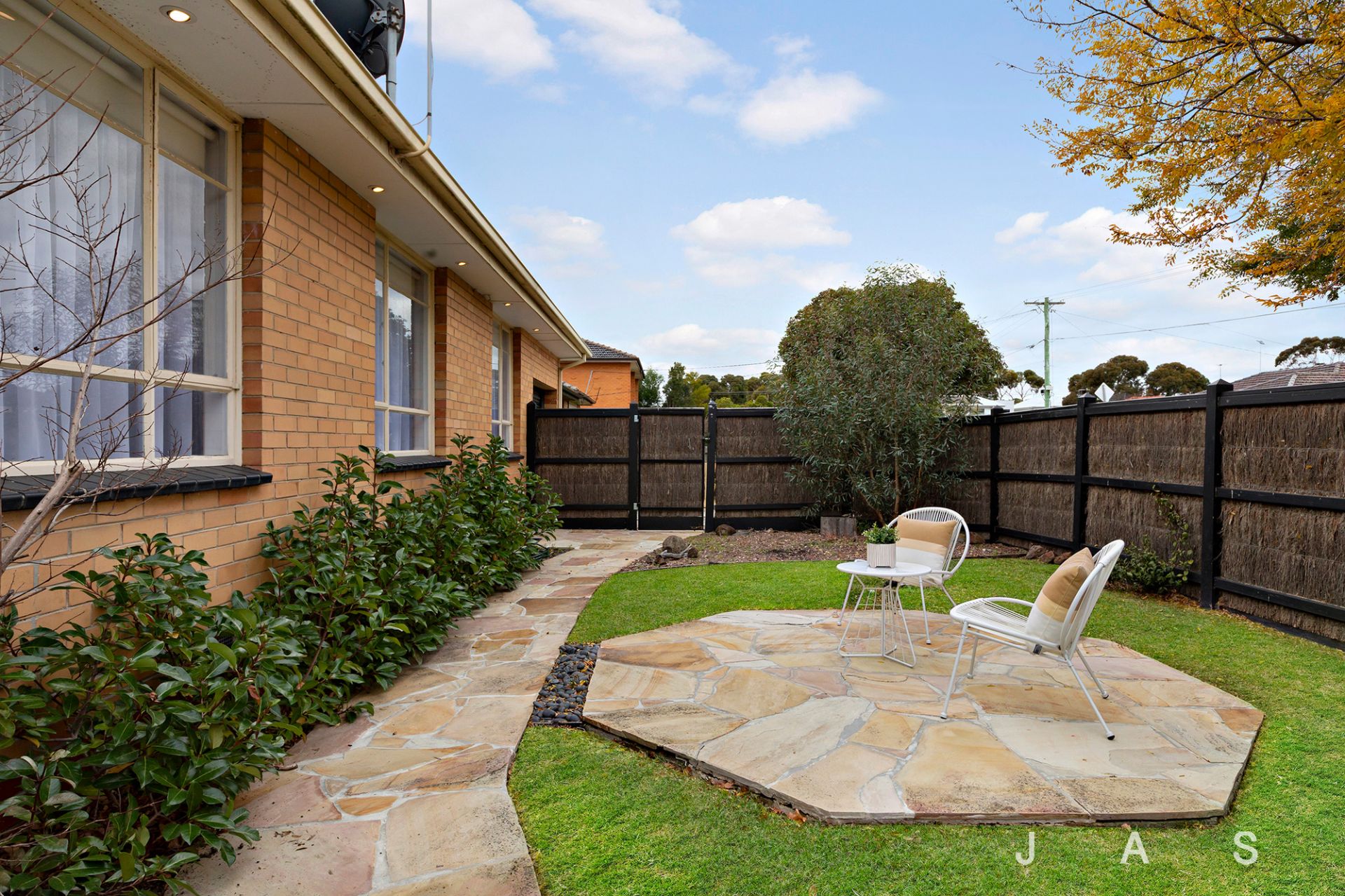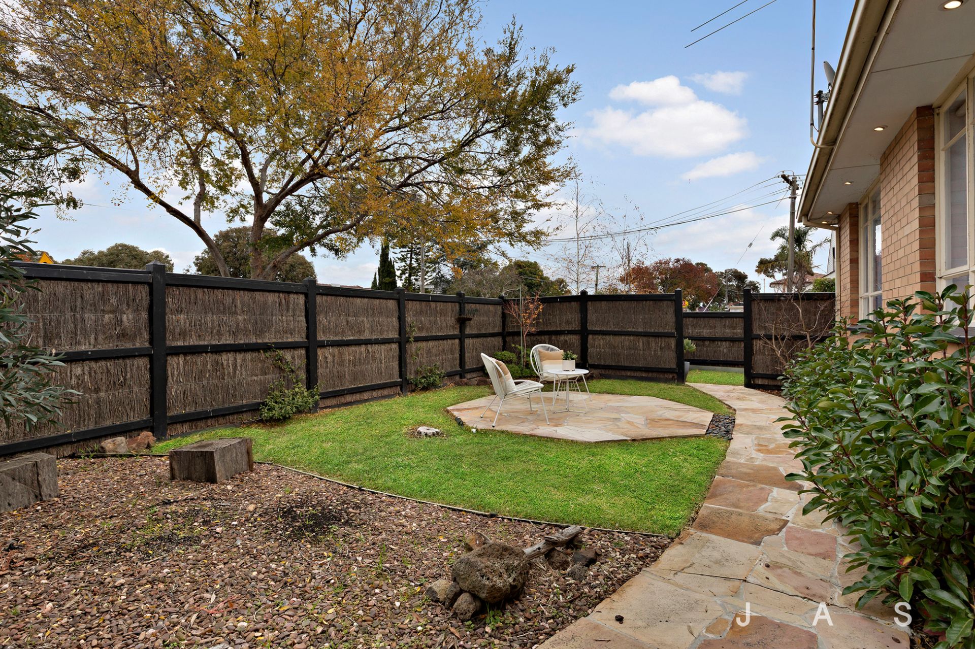 • Large, neatly landscaped garden with paved entertaining patio and dimmable lighting
