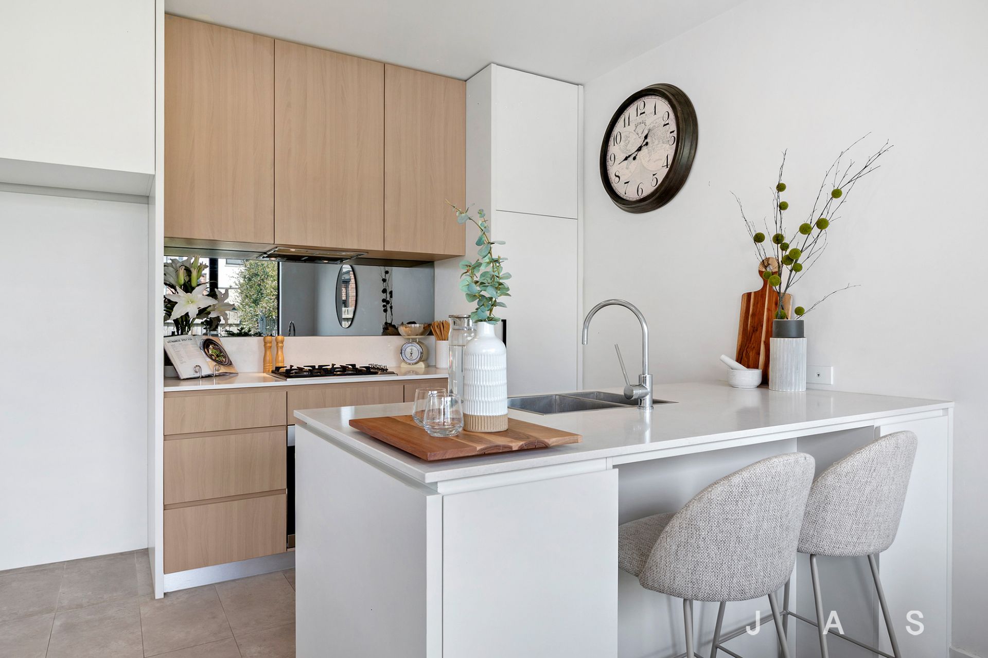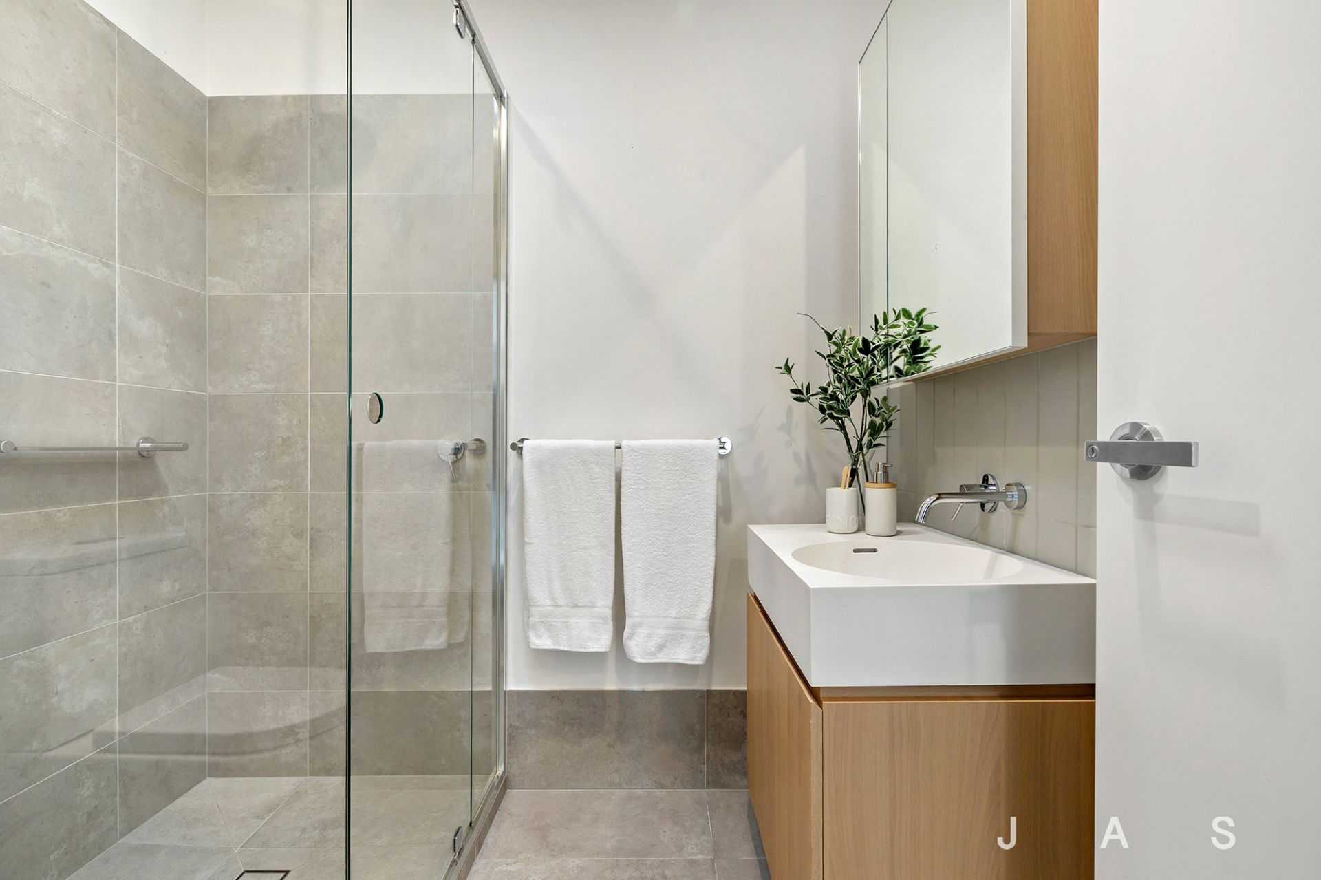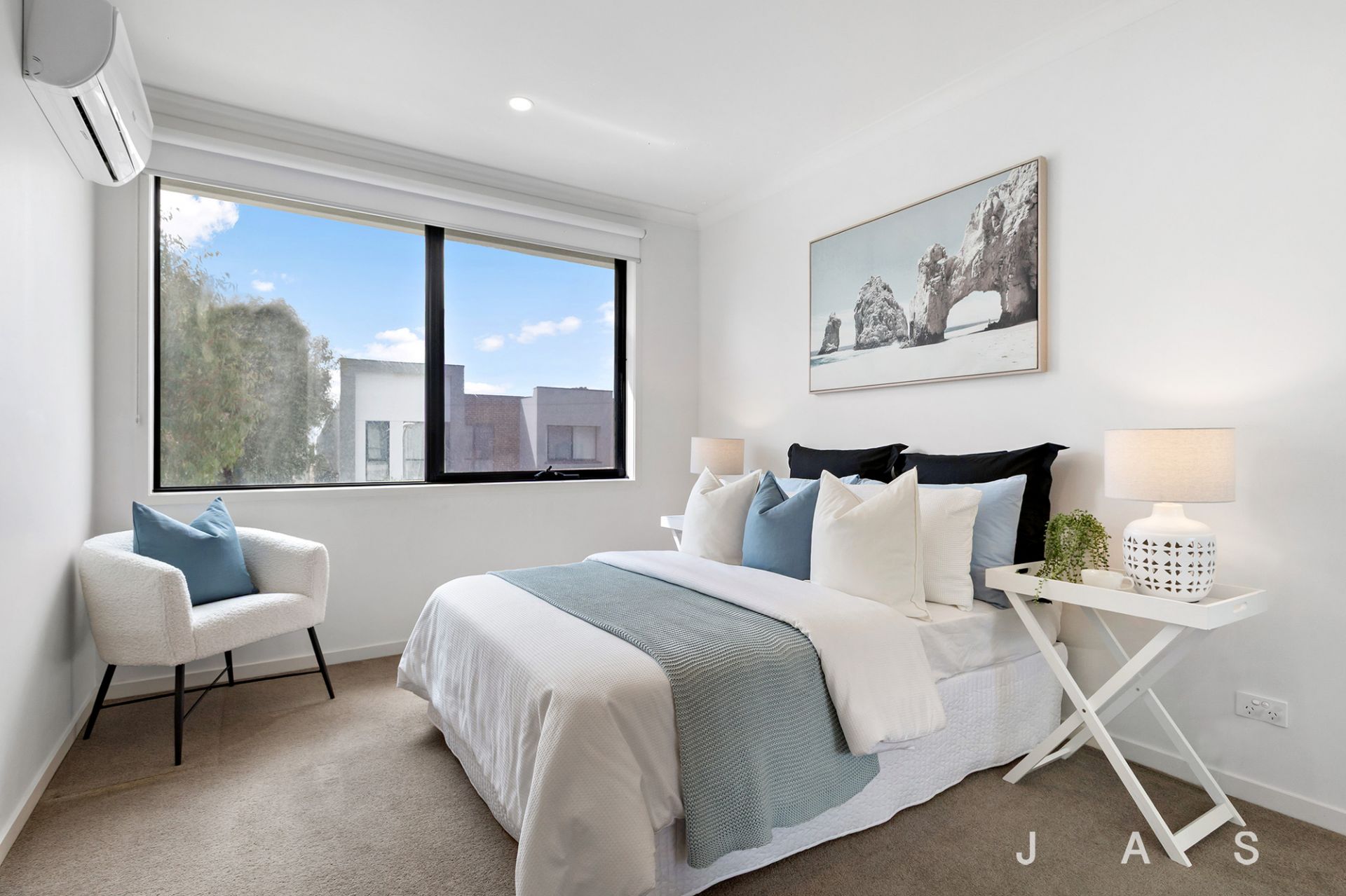 Three bedrooms with built-in robes include a spacious master with an ensuite dressed in calming neutral tones, while the main bathroom offers the luxury of a bathtub—a welcome inclusion for young families.