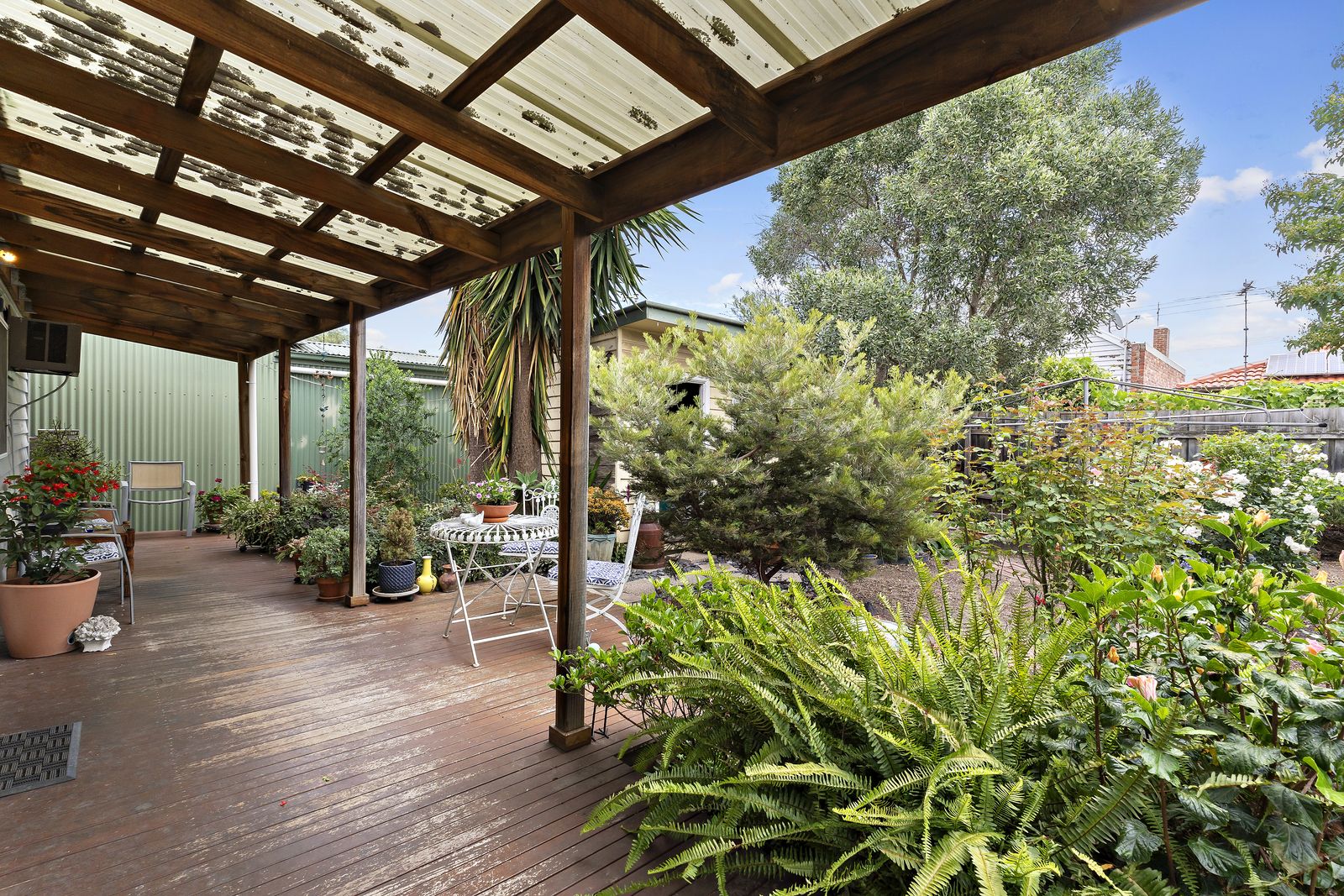 • Large covered entertaining deck + leafy back garden with garden shed