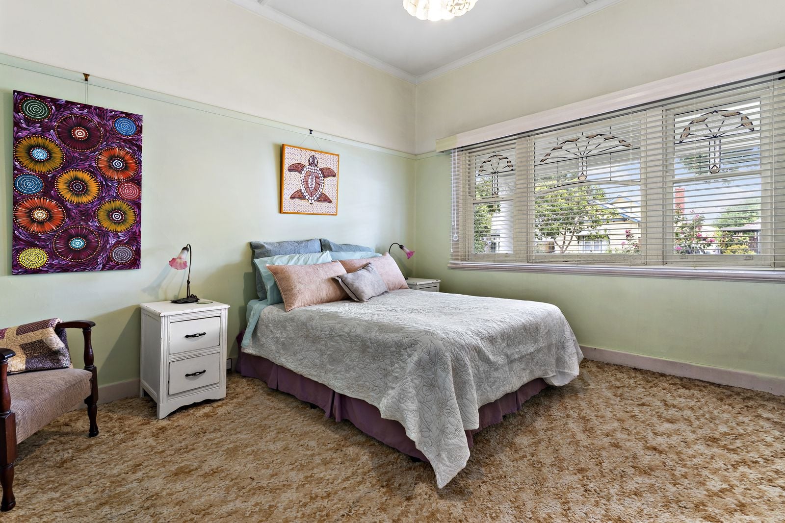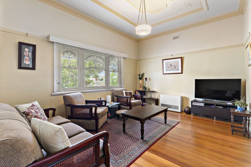 Soaring moulded plaster ceilings, original timber floorboards and stunning stained-glass windows offer plenty of inspiration for a dreamy old-meets-new makeover, while the roomy back garden invites the possibility of extension (STCA).