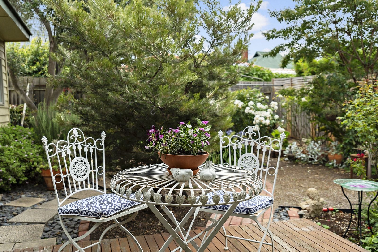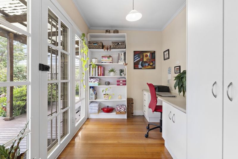 The sunny study is perfect for those working from home, while outside a large covered entertaining deck overlooks the lovingly maintained back garden – a leafy, low-maintenance oasis with handy side access to the front garden and off-street driveway parking.