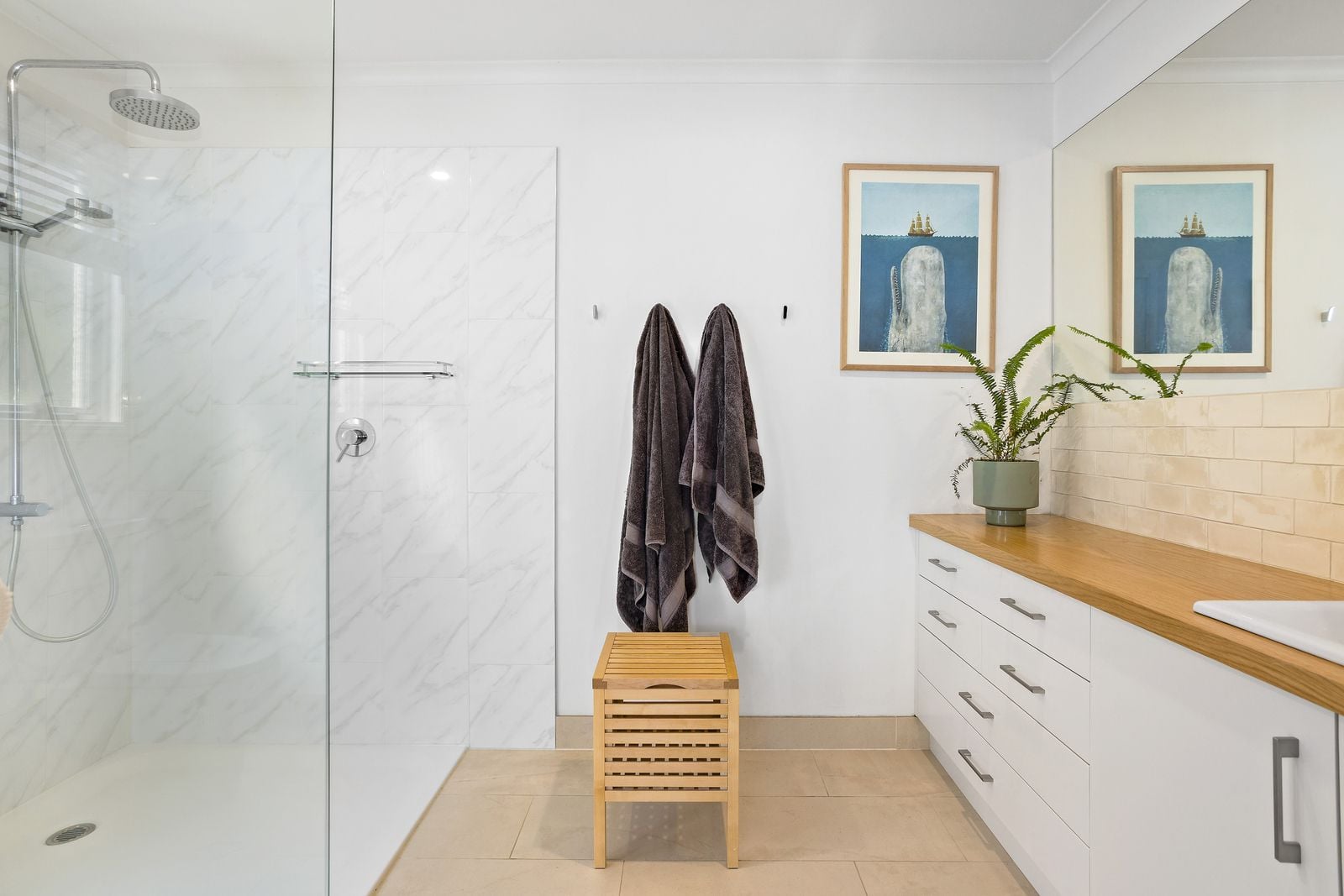 • Large bathroom with luxe rainfall shower + walk-in laundry with internal/external access