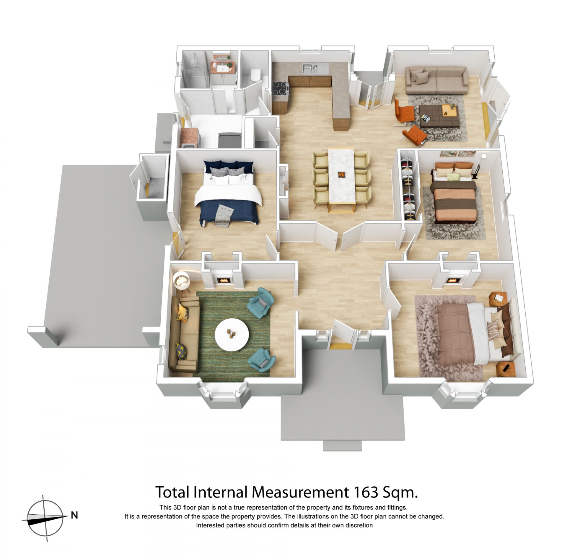 • Three bedrooms, including one with a built-in robe
