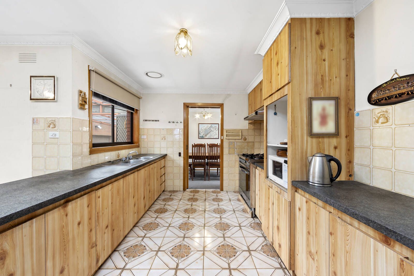 Behind a prominent, impressive external presence, a series of perfectly maintained spaces includes separate lounge, dining and family room/meals areas complemented by a kitchen where retro character and complete functionality form a user-friendly combination. Four bedrooms and two bathrooms, including the main bedroom's ensuite and a central family bathroom, accommodate in classic comfort - the defining attribute of a home further enhanced by a separate laundry, secure garage and low-maintenance gardens.