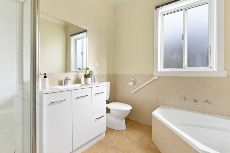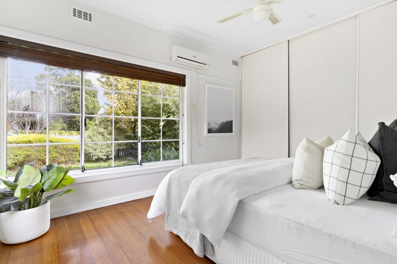 Wake up to stunning front garden views in the large master bedroom, with a corner window inviting floods of natural light and split-system heating and cooling ensuring your year-round comfort. Two additional bedrooms offer ideal retreats for the kids or guests. Servicing the bedrooms is the centrally positioned bathroom with corner bath, ideally complemented by the convenience of a second toilet adjoining the spacious laundry.