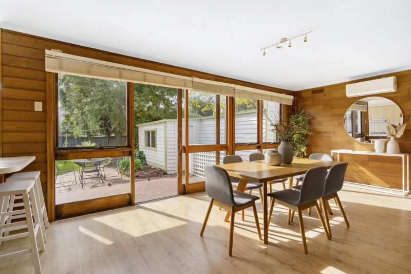 Generous living areas promise plenty of space for quality time together, with the huge living room and large adjoining dining room offering a flexible interconnected living space that can be easily closed off into independent zones. The retro-style kitchen has been recently updated with new cooking appliances and enjoys back garden views and all-day sunshine streaming in through the north-facing window. Fling open the double doors from the dining space to enjoy the sunny deck, where you’ll love dining alfresco and entertaining family and friends as the kids play in the huge back garden beyond.