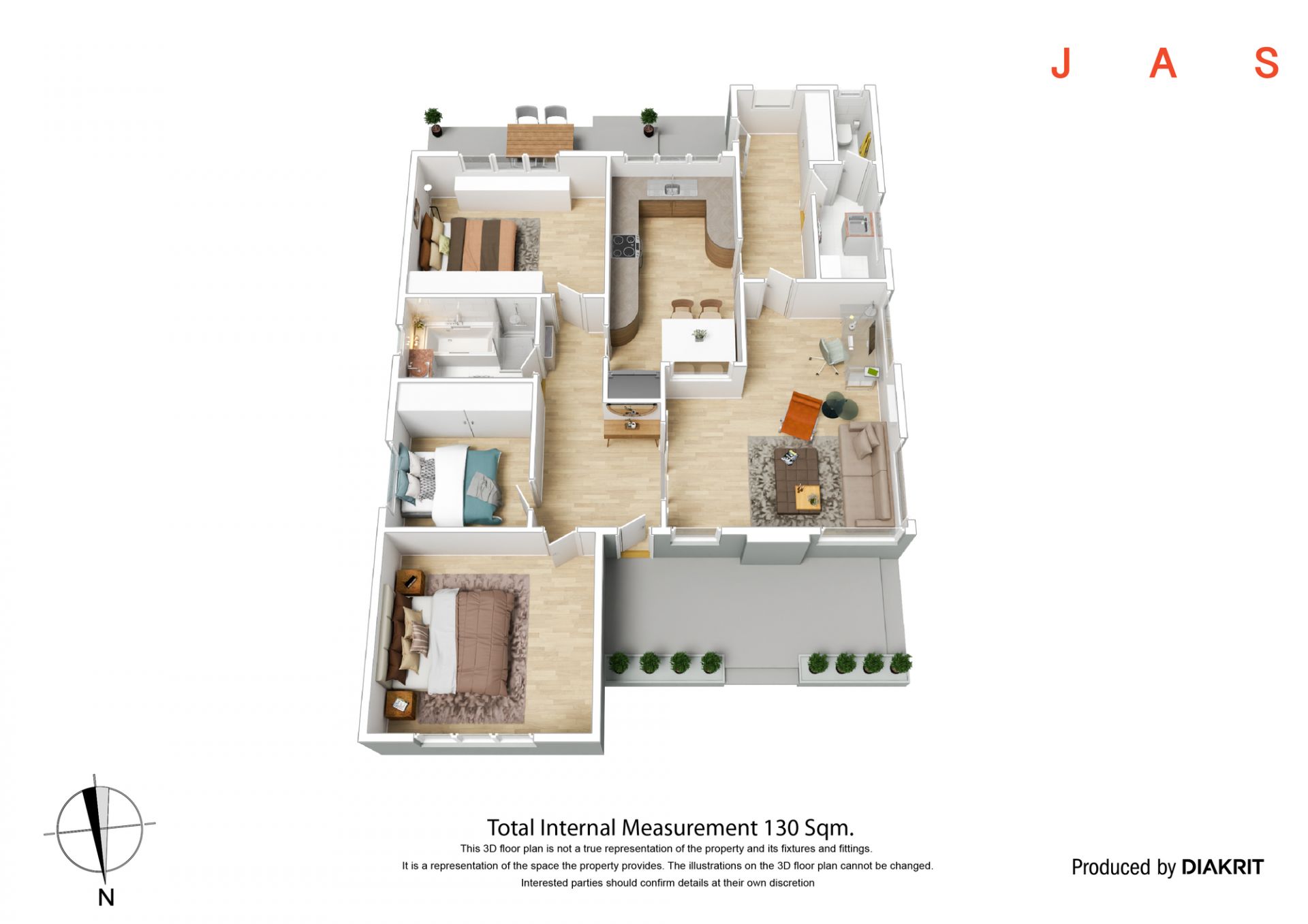 • Three bedrooms, including a large north-facing master and two with built-in robes