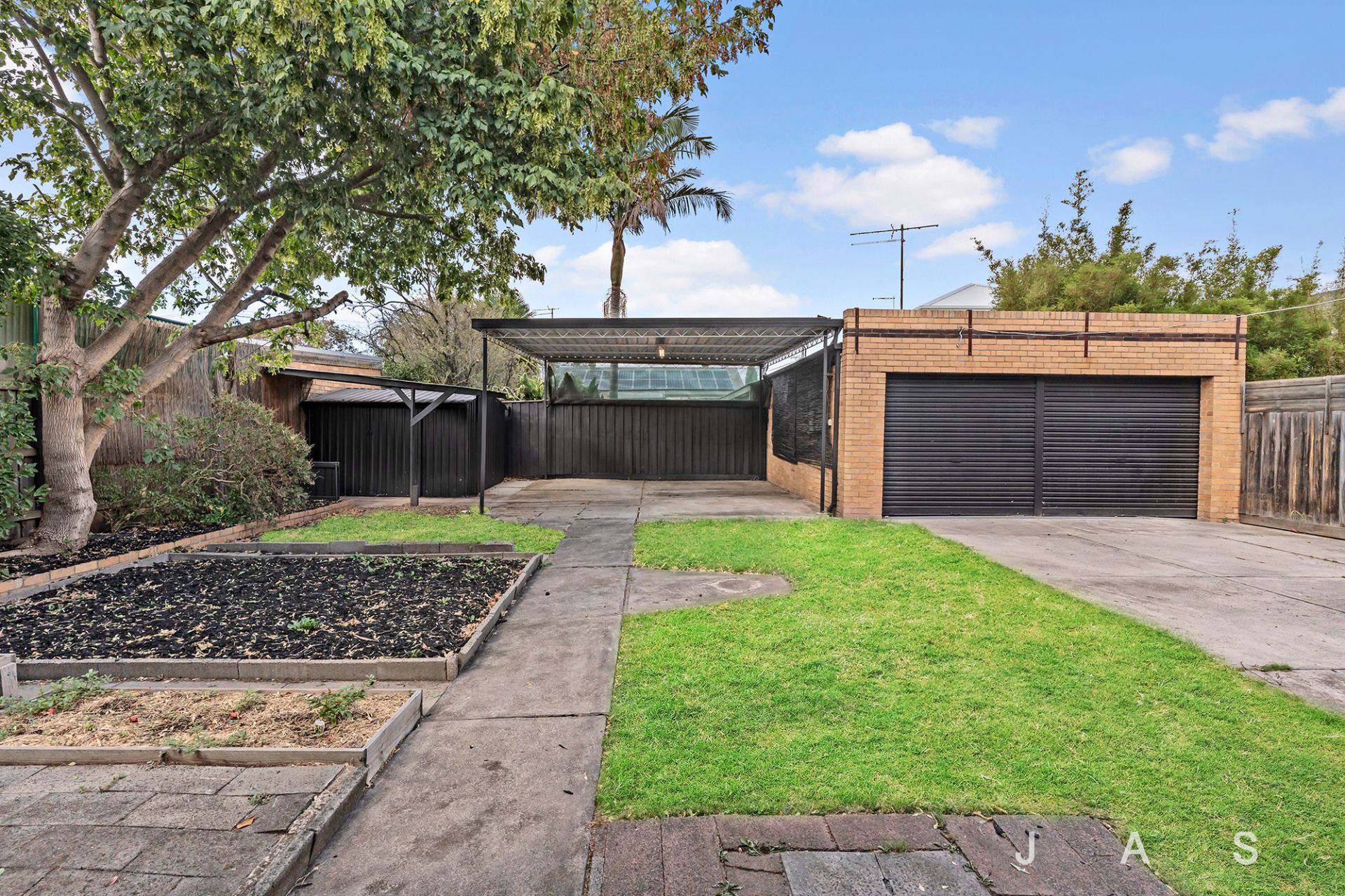 Outside the large back garden offers a covered entertaining zone, a carport and a secure double garage amongst established trees and garden beds.