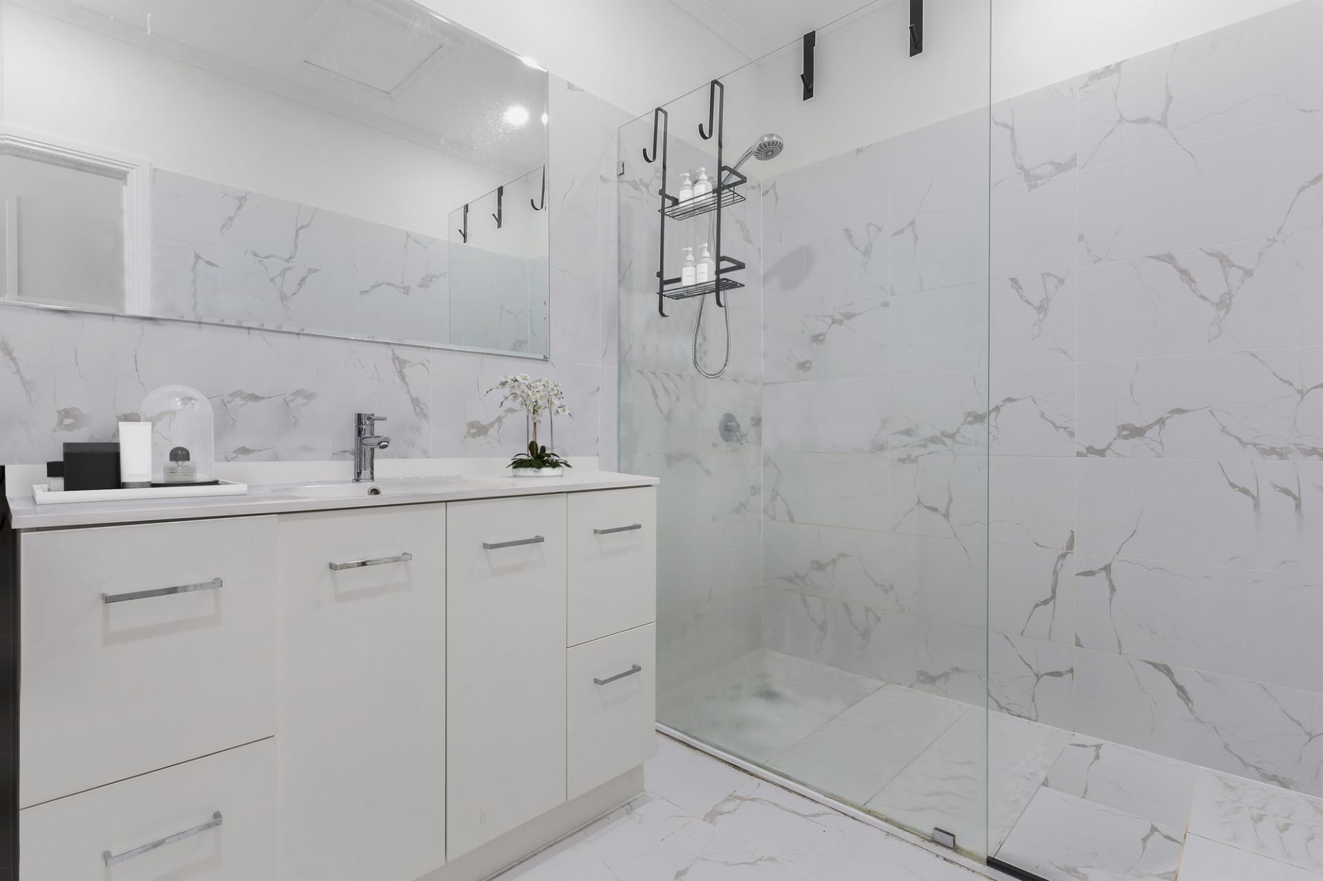 Perched on the upper level are three inviting bedrooms, one with a walk-in robe and two with built-in robes. The upstairs bathroom provides convenience, while a large retreat area boasts two adjoining balconies with park views to enjoy while you relax.