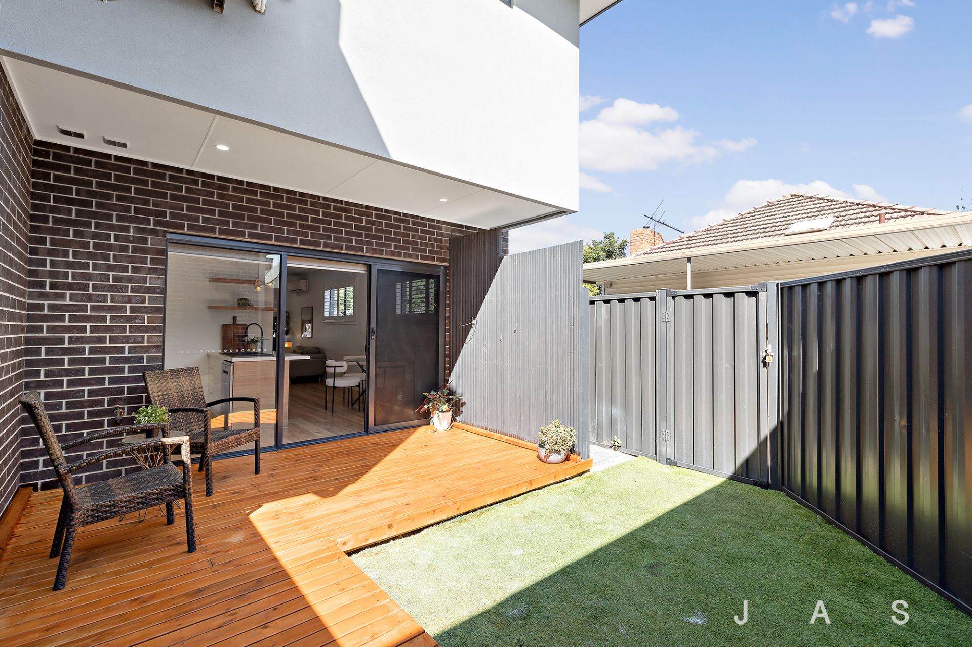 Sliding doors extend the dining zone to a north-facing deck and low-maintenance courtyard garden – the perfect spot to host summer BBQs or for the kids to play safely in full view.