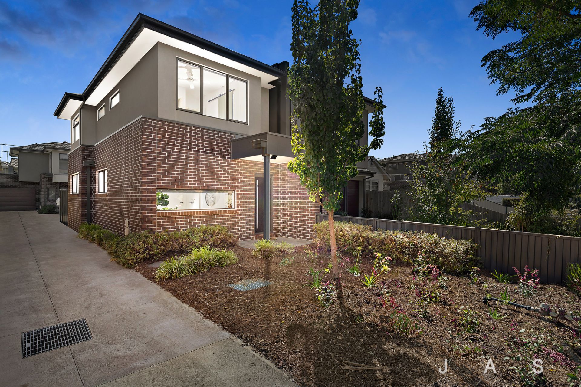 Perched quietly on the upper level are two inviting bedrooms, one with a built-in robe and the other a spacious master suite with a walk-in robe and private ensuite bathroom. The second bathroom is also located on the upper level, ensuring total convenience for both bedrooms.