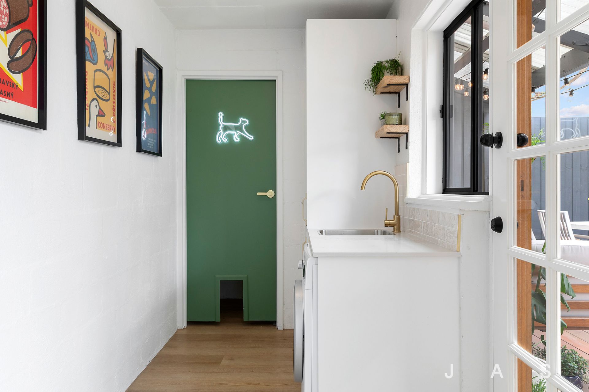 Outside a private courtyard invites you to dine and entertain alfresco, with a deck lit by cheery festoon lights overlooking a neat garden space. Sit outside to enjoy your morning coffee, play in the sunshine with the kids and enjoy summer BBQs with family and friends.