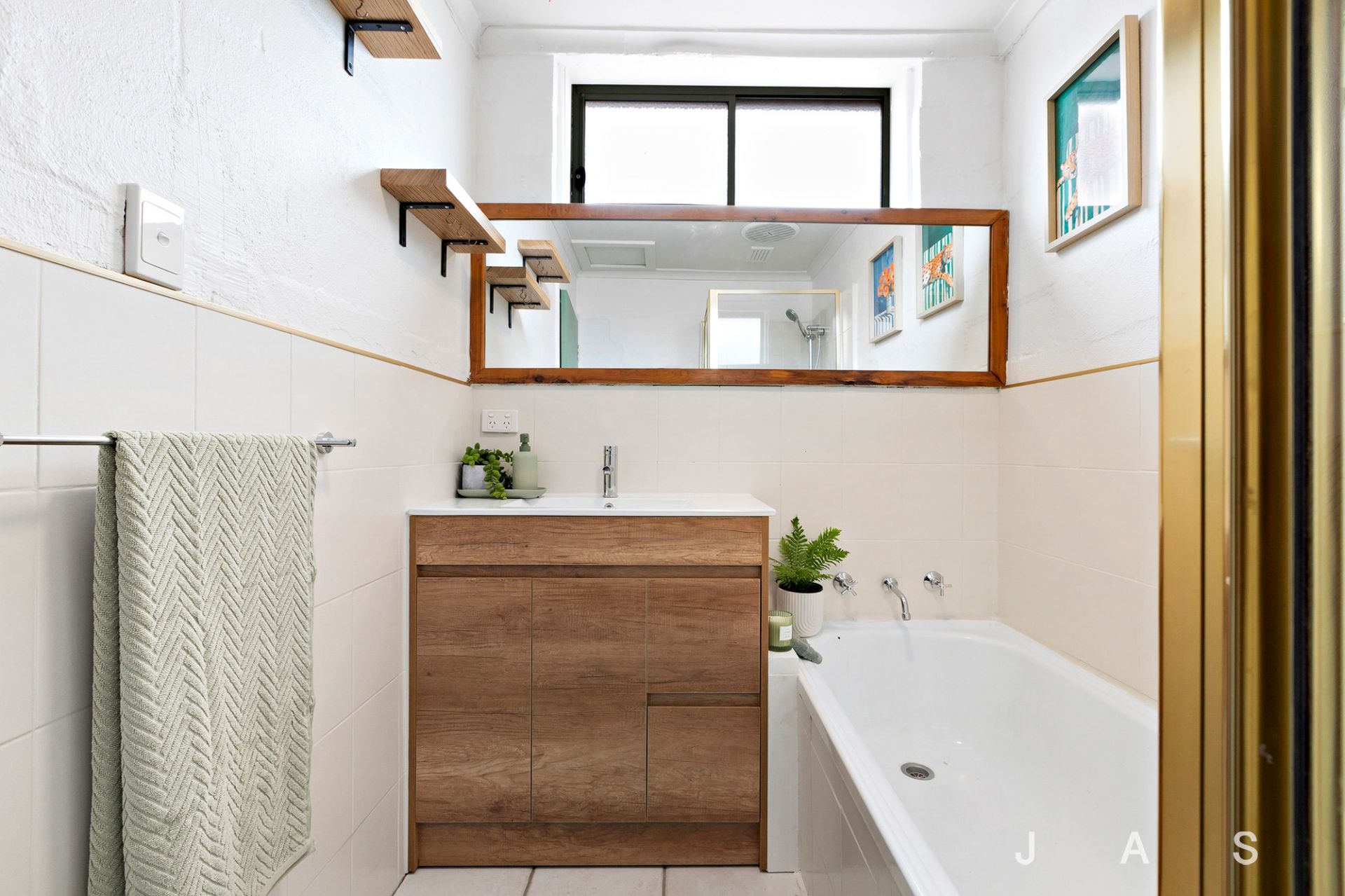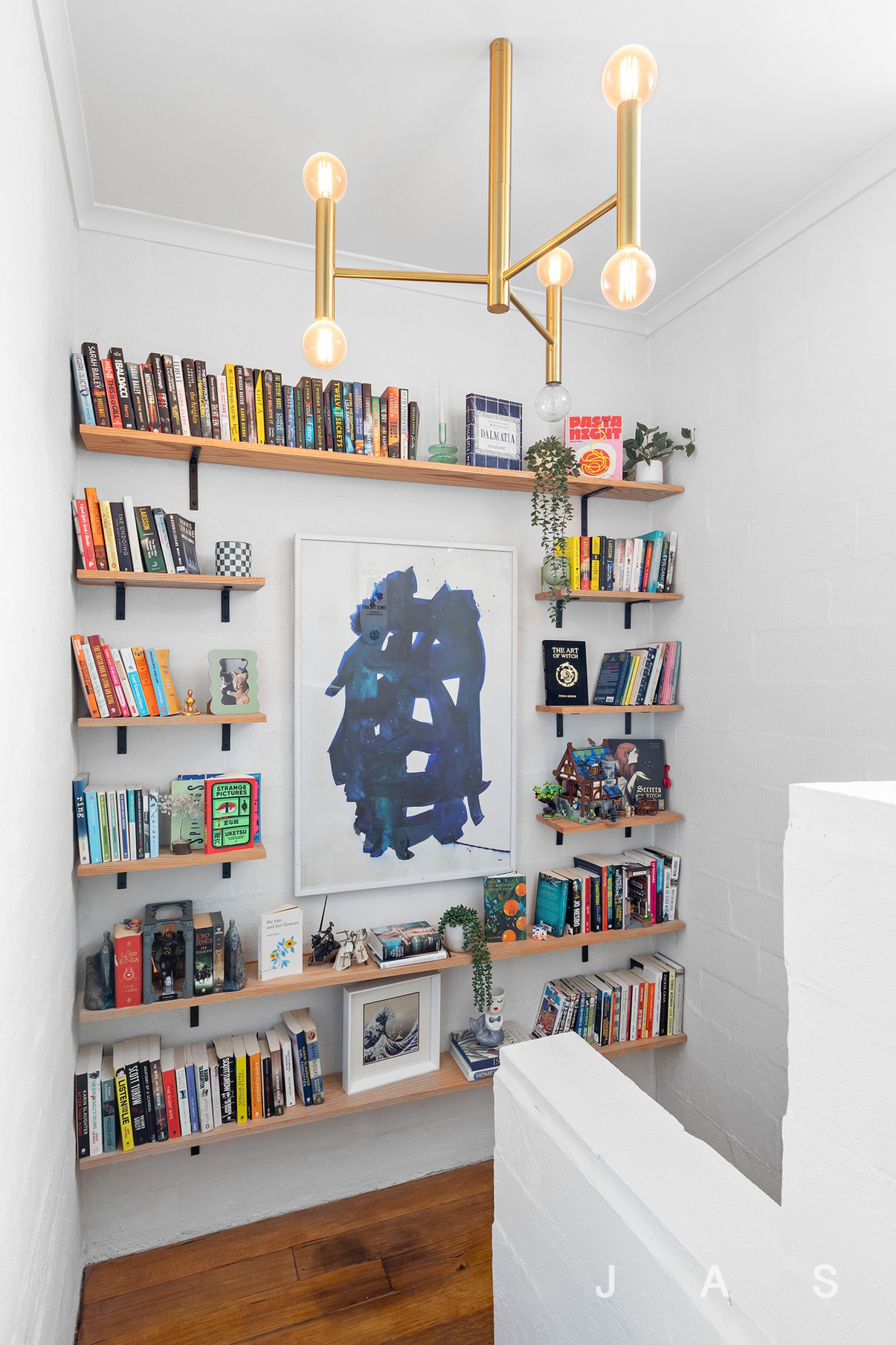 Display your books, art and travel treasures on the stairwell’s shelf wall—a stunning feature to enjoy on your way up to the bedrooms. Both boasting built-in robes, the bedrooms offer inviting retreats and share the tranquil bathroom, where a shower and inset bath are complemented by a separate toilet.